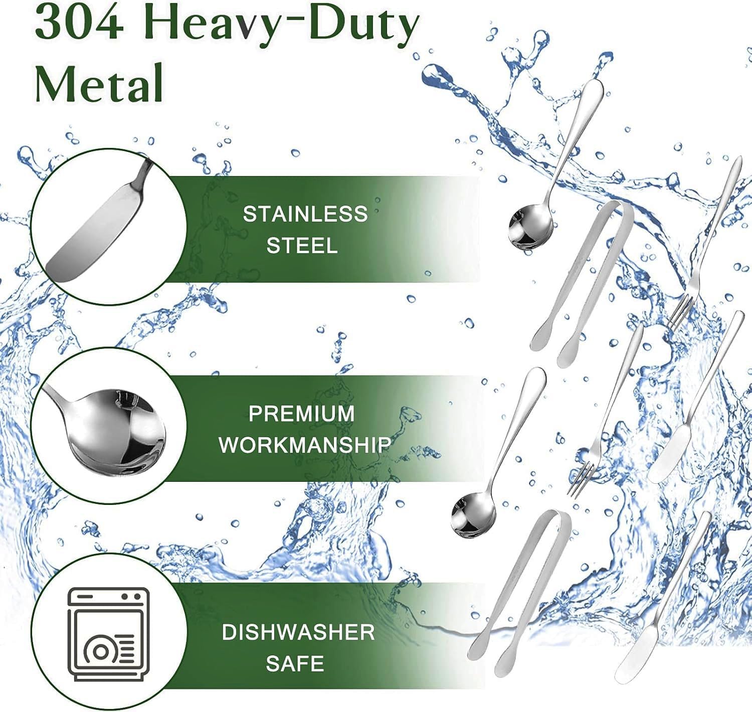 - Complete Set: Our charcuterie boards accessories include 6 cheese knives, 4 spreading knives, 4 forks, 4 spoons, 2 tongs, 2 wooden honey dipper and 20 mini flags. This multi-functional utensil set has every tool you need to create delicious dishes