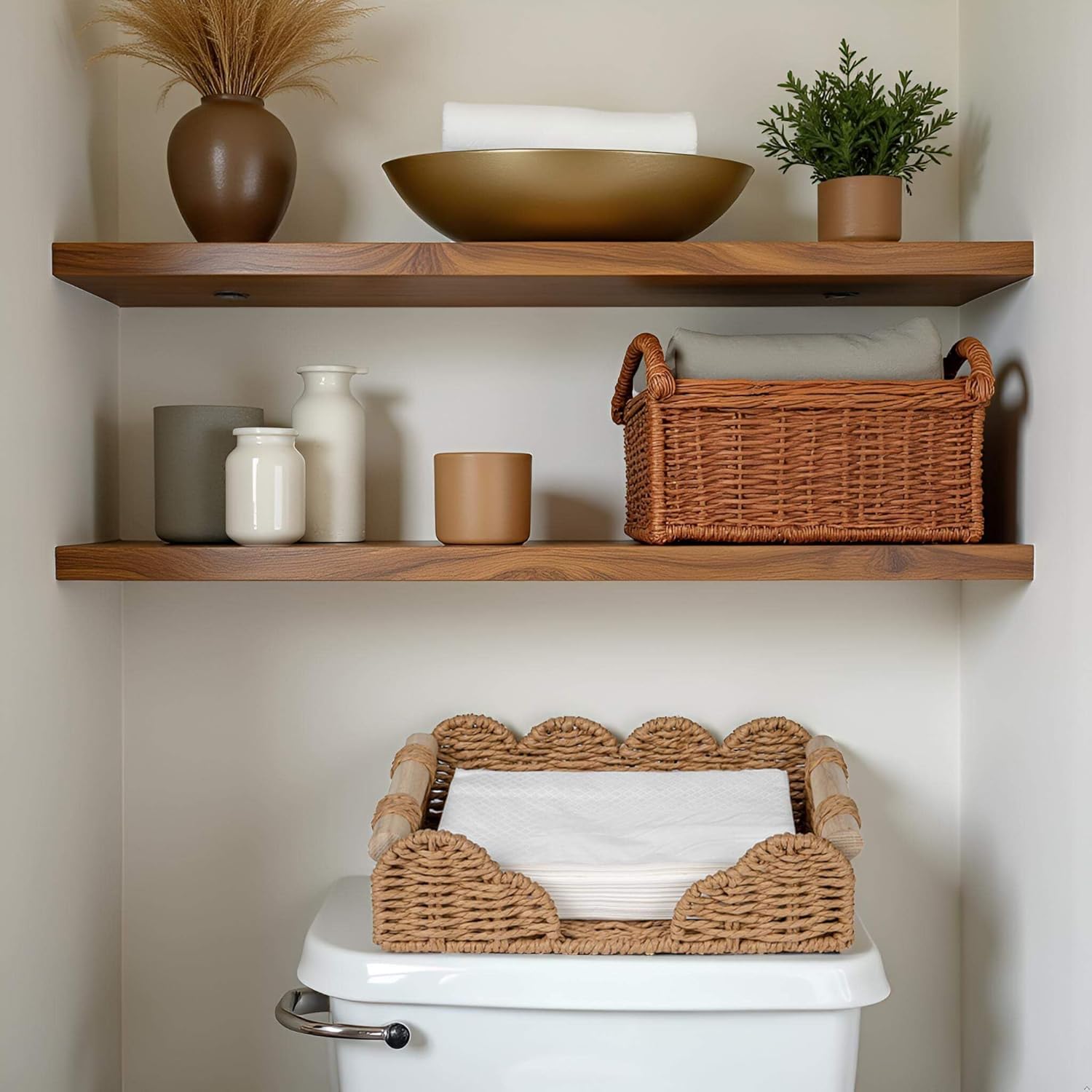 CubesLand Scalloped Napkin Holder for Bathroom Decor, Paper Rope Flat Napkin Dispenser Guest Towel Tray for Bathroom, Farmhouse Warm Napkin Holder for Table Dining Room Home Kitchen Decor, Neutral