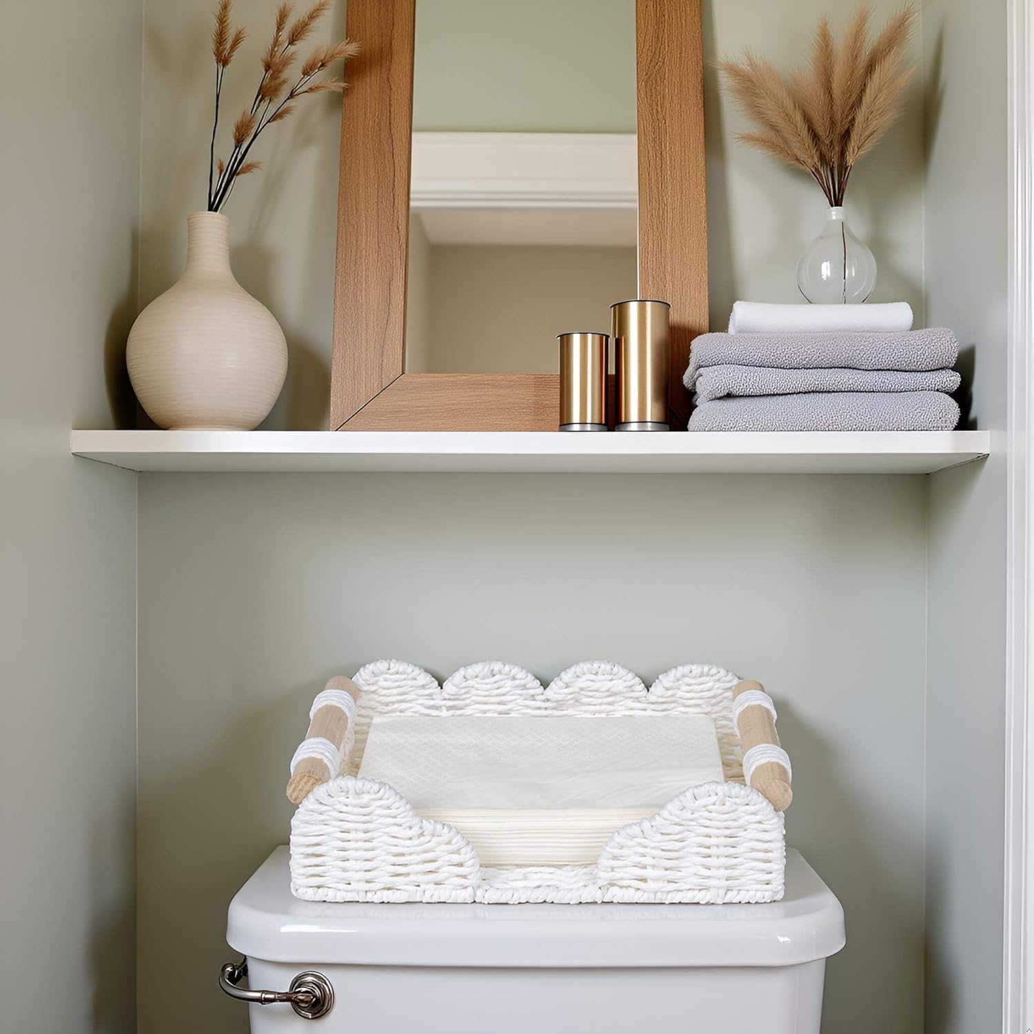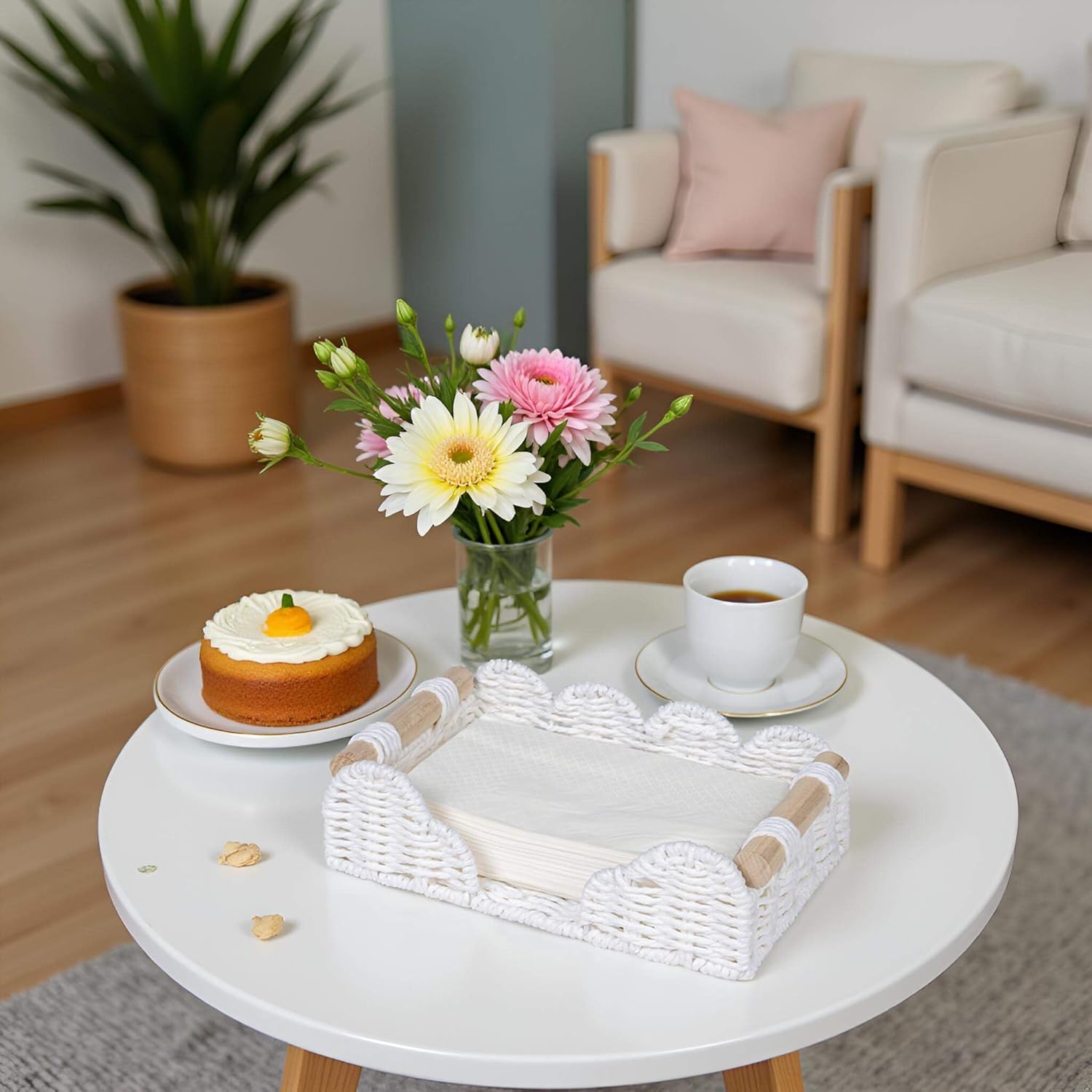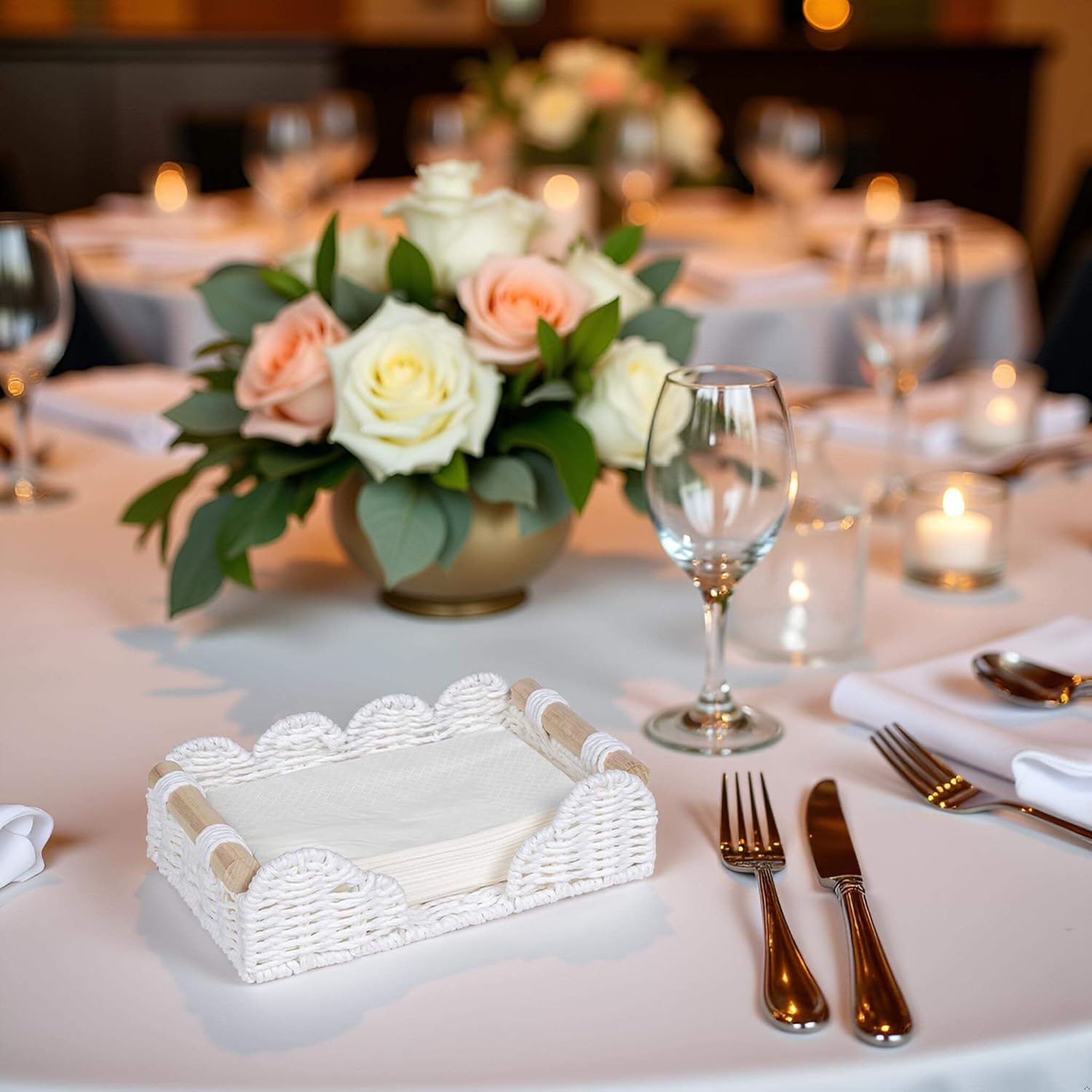 CubesLand Scalloped Napkin Holder for Bathroom Decor, Paper Rope Flat Napkin Dispenser Guest Towel Tray for Bathroom, Farmhouse Warm Napkin Holder for Table Dining Room Home Kitchen Decor, White