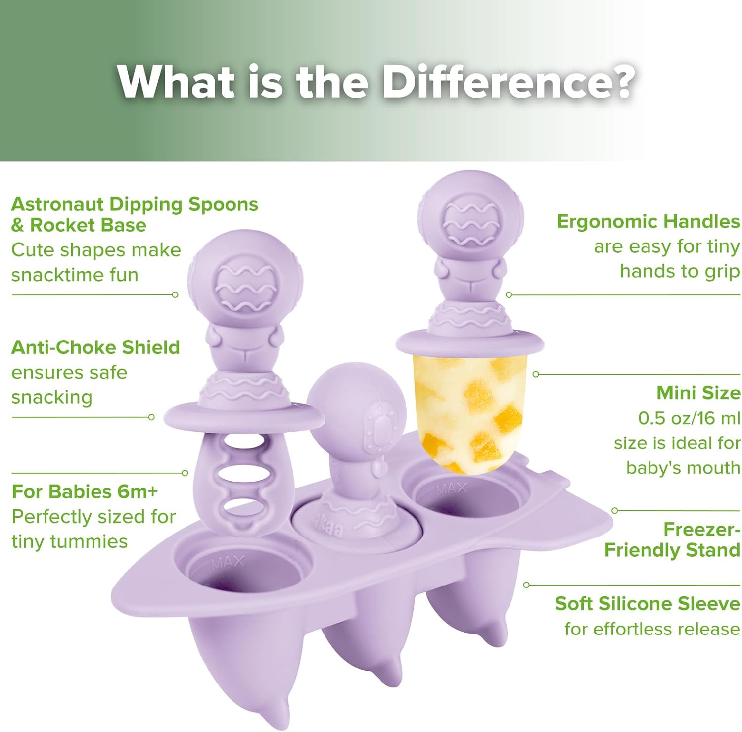 Haakaa Astronaut Ice Pop Mould Set β Mini Silicone Popsicle Molds with Sticks for Kids, Ice Pop Maker with Anti-Choke Astronaut Handles, Ice Cream & Frozen Treat Molds