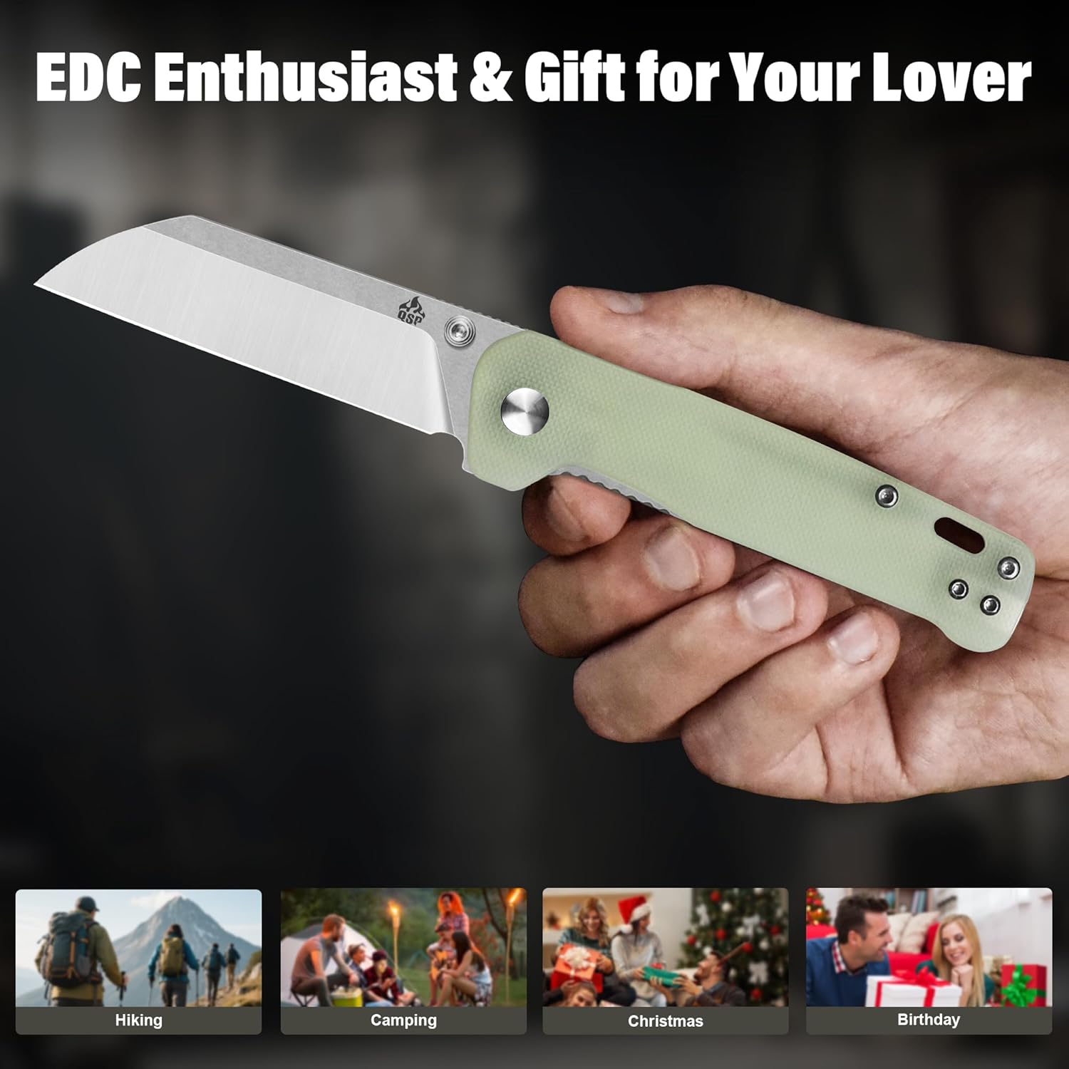 - Comfortable Grip: This qsp penguin knife features jade G10 handle with an ergonomic design that ensures easy operation even during extended use. It maintains excellent performance even in wet conditions, while also offering durability and non-slip grip.