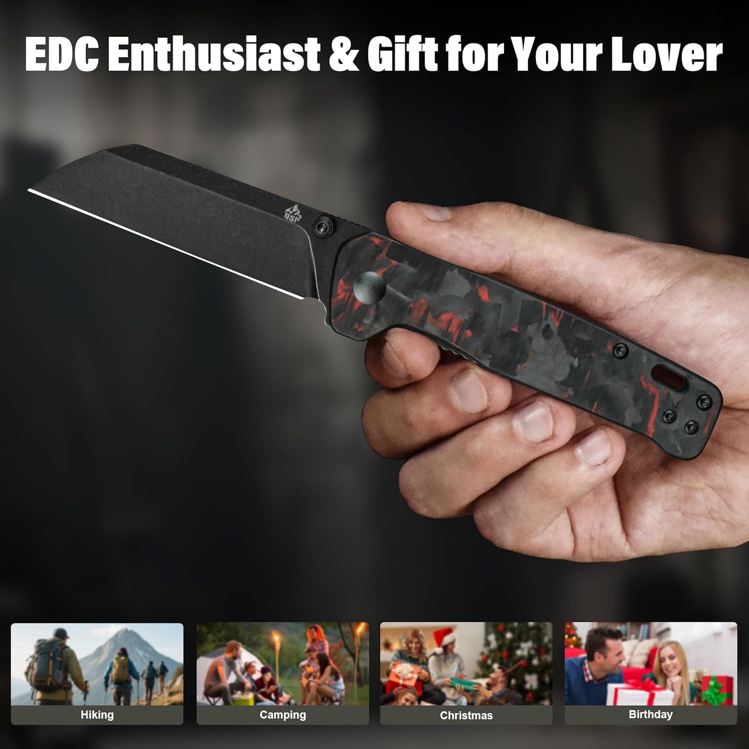 - Comfortable Grip: This qsp penguin knife features red shredded CF overlay G10 handle with an ergonomic design that ensures easy operation even during extended use. It maintains excellent performance even in wet conditions, while also offering durability and non-slip grip.