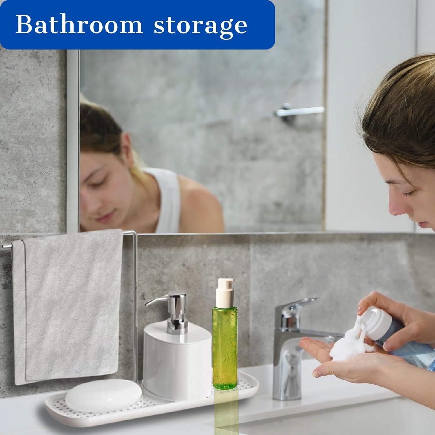 - Kitchen sink caddy】The kitchen sink organizer is ready to use upon receipt, easily installation and drain design , and is widely used on counters or bathrooms, making it a satisfying gift. This hygienic soap dispenser has a stylish, aesthetic and organized look for your kitchen, A countertop sink caddy sits right near your faucet and comes in various sizes and styles. This is a great option if you want to separate your sponges from your brushes or dish soap in little compartments