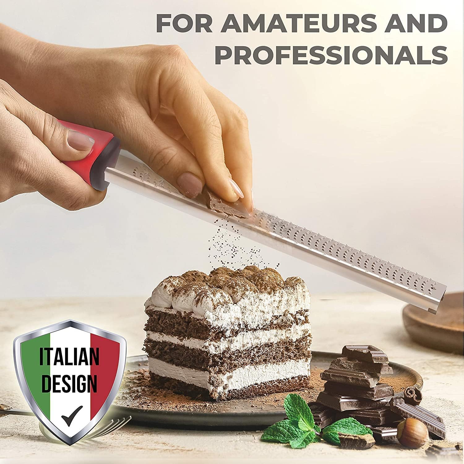 Stainless Steel Cheese Grater & Lemon Zester w/Extra Sharp Blade - Perfect for Lemon, Parmesan, Garlic, Chocolate - Spice Up any Dish in Seconds w/Your Premium Citrus Hand Grater with Handle - Red