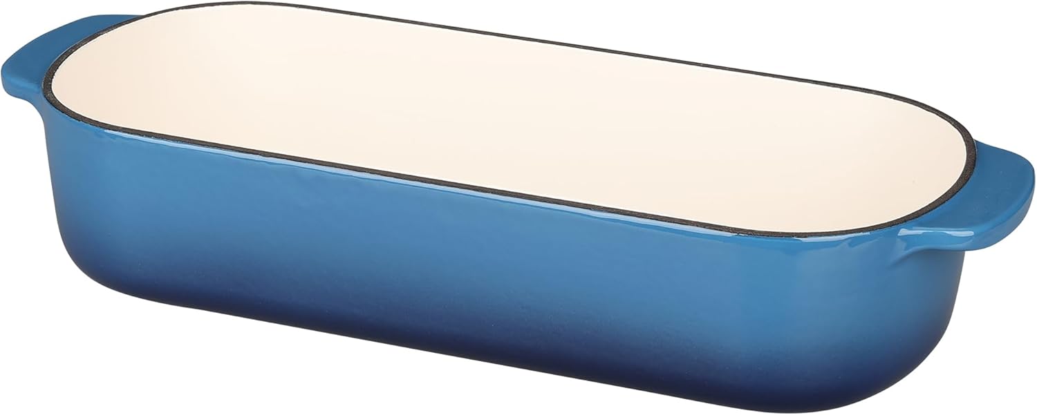 Enameled Cast Iron Loaf Pan with Lid, Dutch Oven for Homemade Bread Baking, 12.5x5.5 inch, 5Qt, Lake Blue