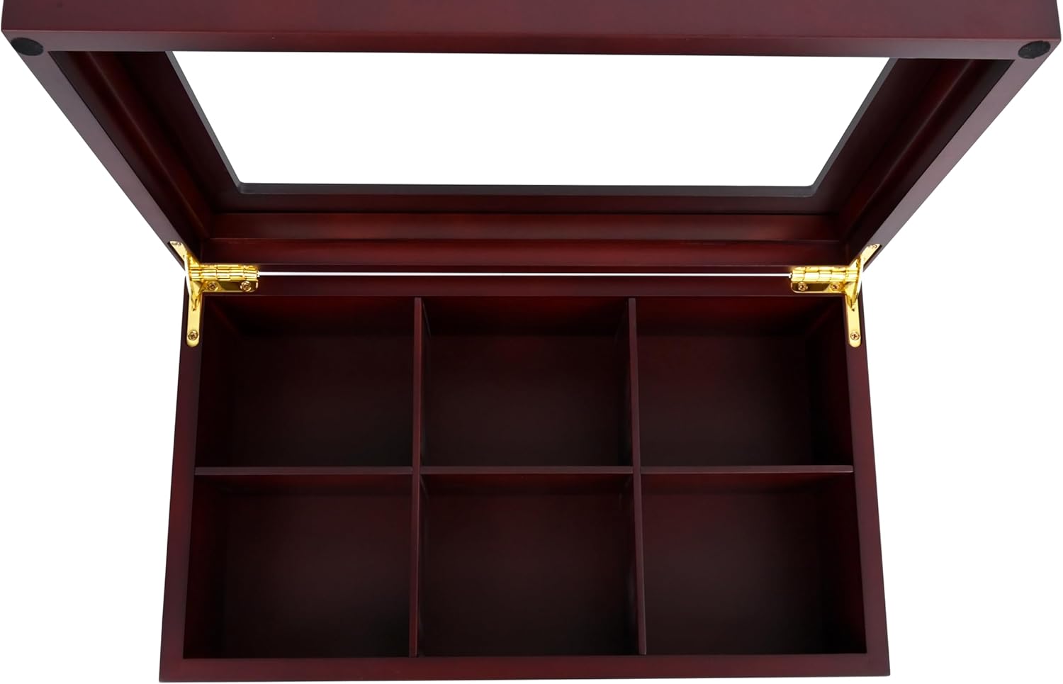 CIGAROL Luxury Wooden Tea Box Organizer – 6 Compartment Storage Chest with Scratch-Resistant Glass Lid – Ideal for Tea Bags, Coffee Pods, Spices, or Office Supplies