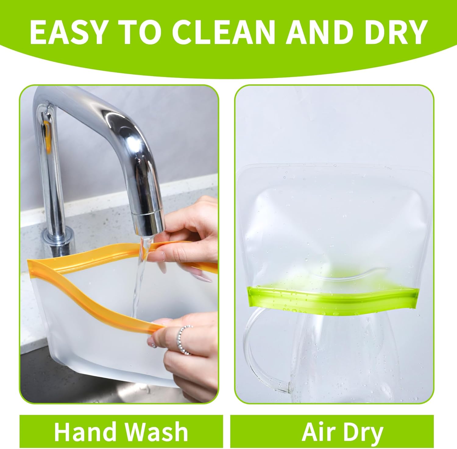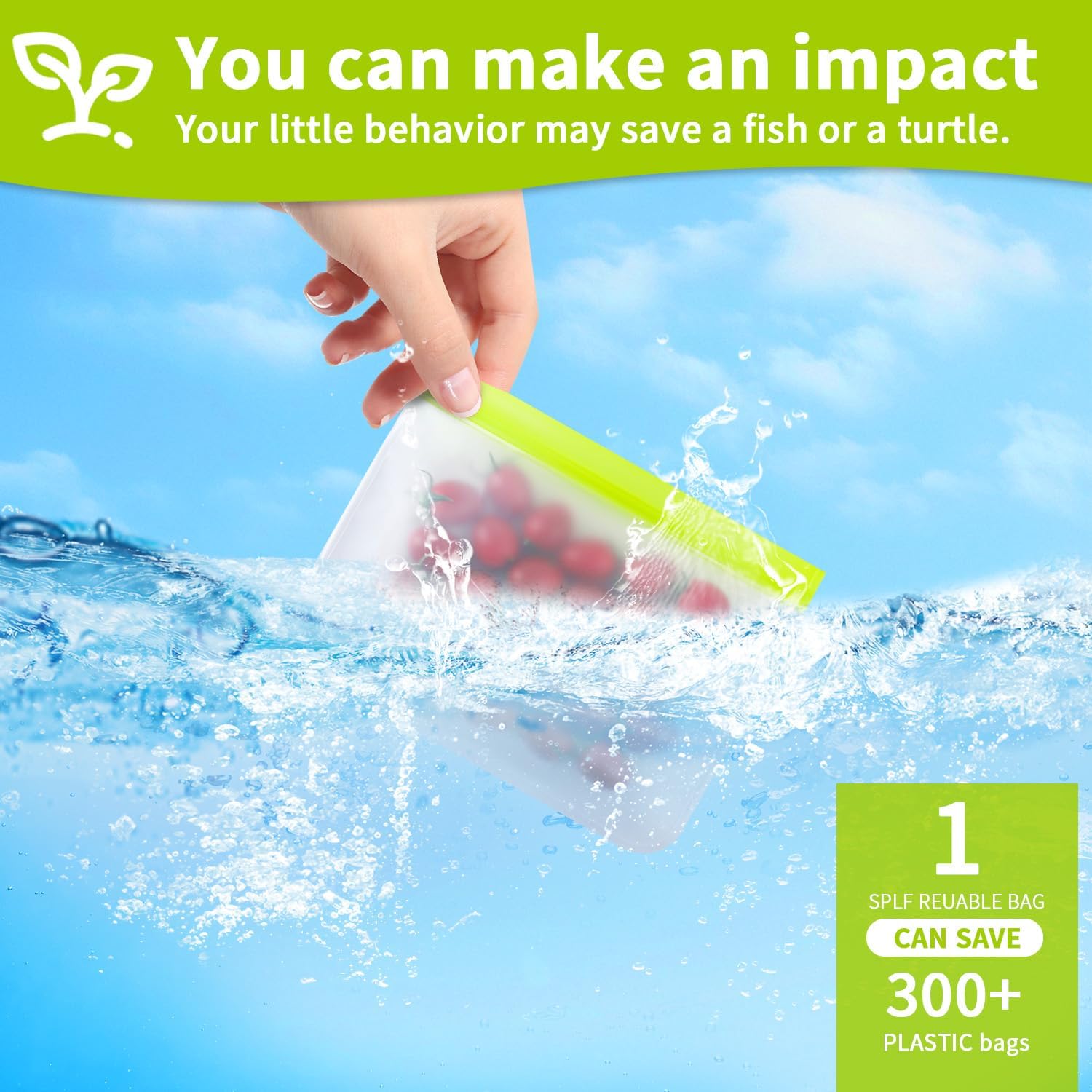 - [REUSABLE AND RECYCLABLE]: This silicone food storage bag is designed with the environment in mind. The extra thick, abrasion-resistant PEVA material makes it more reliable and can be reused hundreds of times. One reusable silicone storage bag can replace multiple disposable plastic bags. Protect the planet and save money at the same time.
