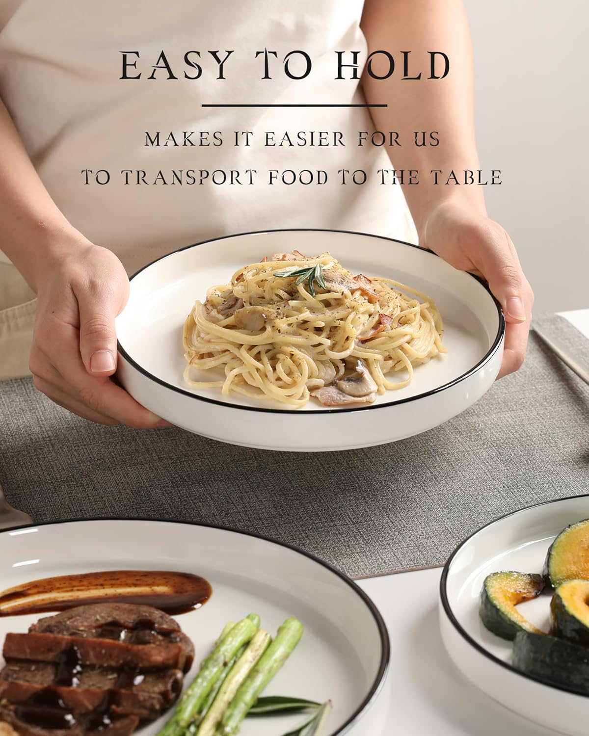 Sweejar Porcelain Dinnerware Sets for 6, 18 Pieces Ceramic Plates and Bowls Set, Classic Modern Simple Kitchen Dinner Dining Ware Set, Dishwasher and Microwave Safe Dishes Sets(Pure White-Black Rim)