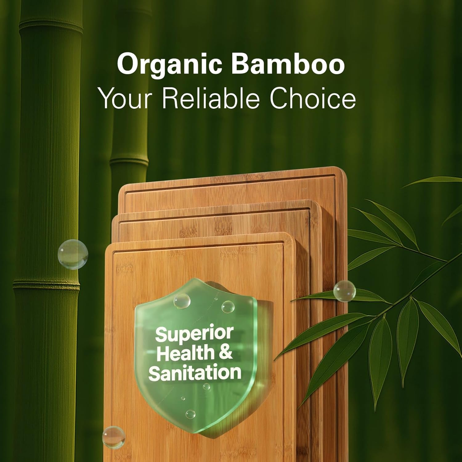 Bamboo Cutting Boards for Kitchen, Large Wood Cutting Board Set with Juice Grooves and Handles, Multi-Size Charcuterie Boards for Meat Vegetables Fruits, Great for Meal Prep, Serving & Gifting