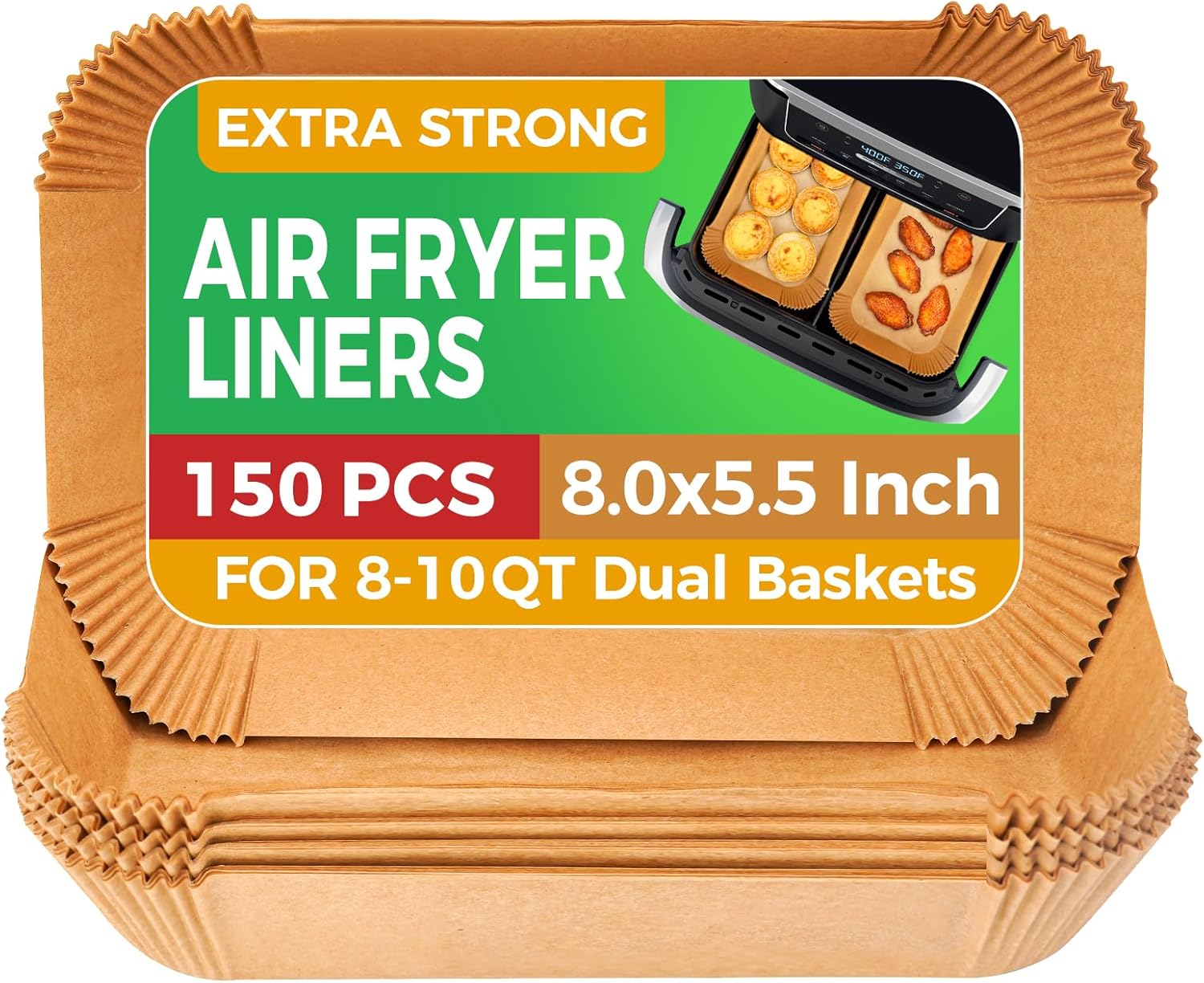 Air Fryer Liners Disposable - 150Pcs 8In Rectangle Parchment Paper for Air Fryer Non-Stick Airfryer Basket Liners for Steamer Microwave Oven