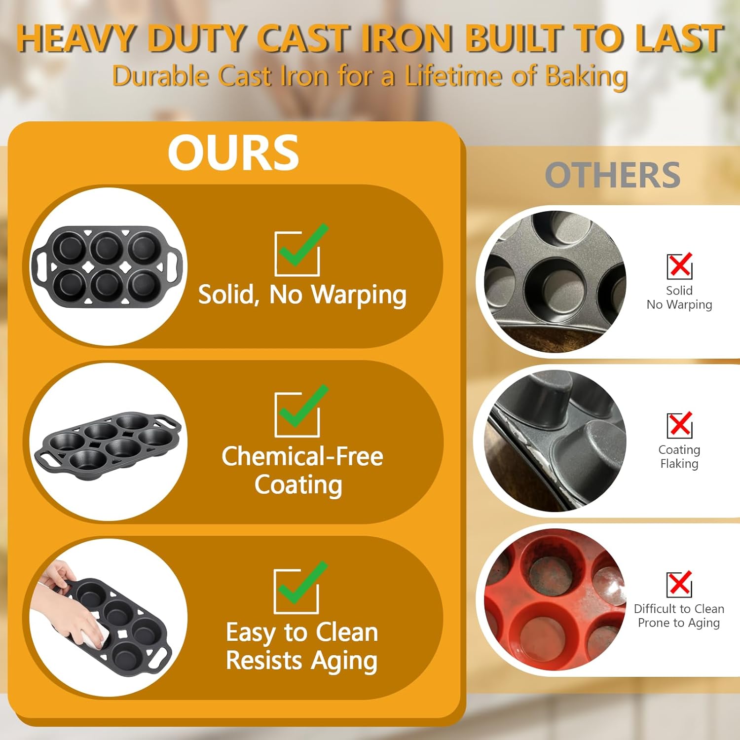 - CRUST MUFFINS: This cast iron muffin pan delivers excellent heat distribution and retention — perfect for muffins with a crispy crust and tender center, bringing out that irresistible homemade taste every time