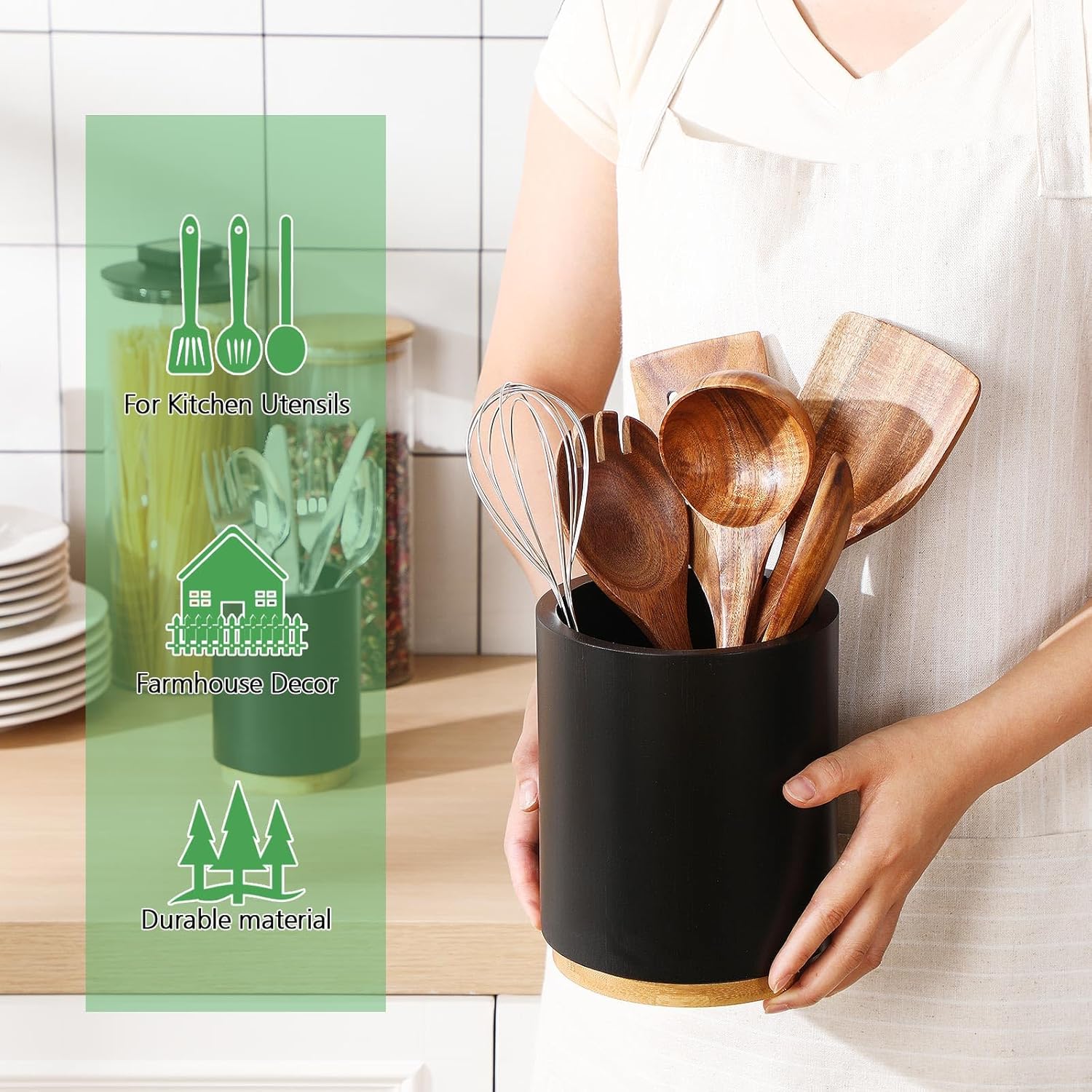 - Ideal Gift Choice: this wood utensil holder for countertop matches a variety of kitchen styles and is the ideal solution for kitchen storage, bringing convenience and pleasure to everyday cooking; It is a great choice of gift for family or friends who love cooking