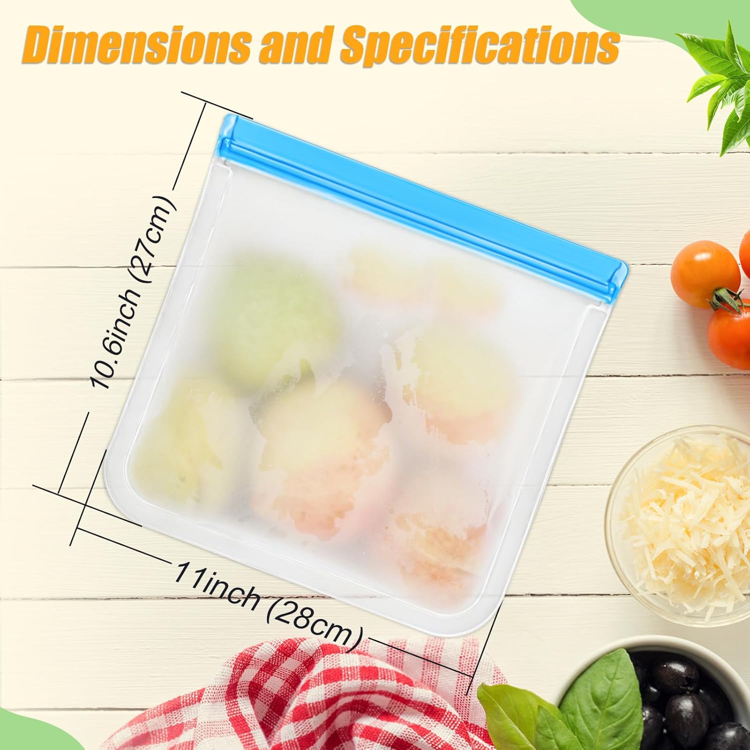 - 【Airtight and Leak Proof】The silicone reusable bags feature a double-seal zipper closure for a secure, leak-proof seal. The reusable bags are airtight, preventing liquids from leaking. The food bags are moisture-proof, dust-proof, and odor-resistant, ensuring long-lasting storage. Our leakproof reusable storage containers available in various sizes which can accommodate your needs for marinated meats, meal prep, frozen foods, sandwiches, snacks, lunches, vegetables, fruit, pet food, and more