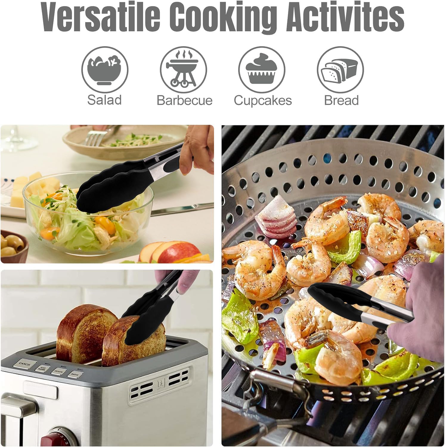 - MULTIPLE APPLICATIONS: Cooking tongs are the perfect tool for individual serving at the table or when hosting a buffet. They excel at handling various foods, making them ideal for home-made salads, appetizers, and taco bars. Whether you're serving cheese, veggies, lettuce, beans, or bacon, these small tongs will make your food presentation effortless and elegant. Elevate your dining experience with these versatile and practical tongs!