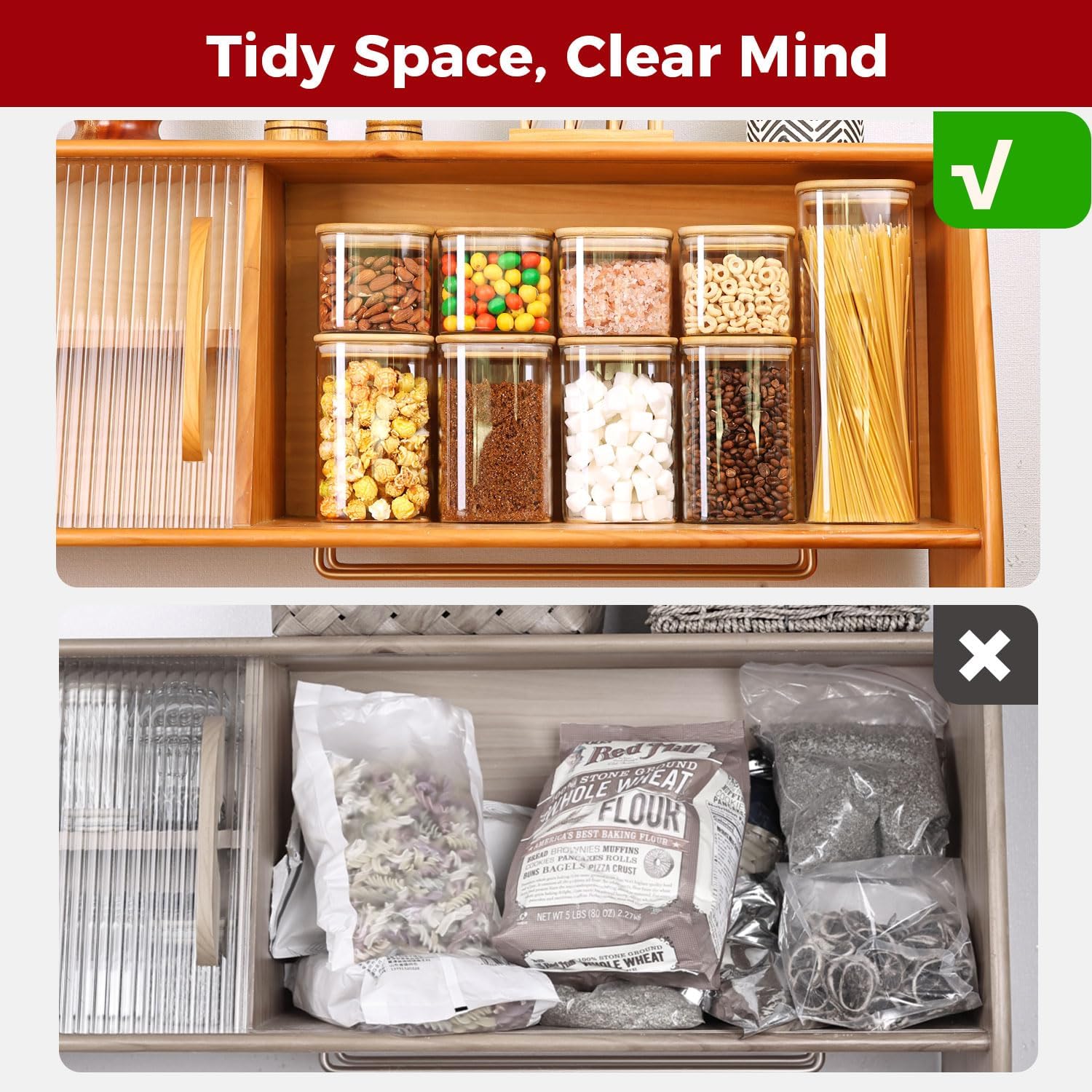 - 【Practical Size for Kitchen Use】Compact yet spacious, these jars fit easily on shelves, countertops, or inside drawers. A smart choice for coffee stations, tea corners, or snack zones—where style meets function.