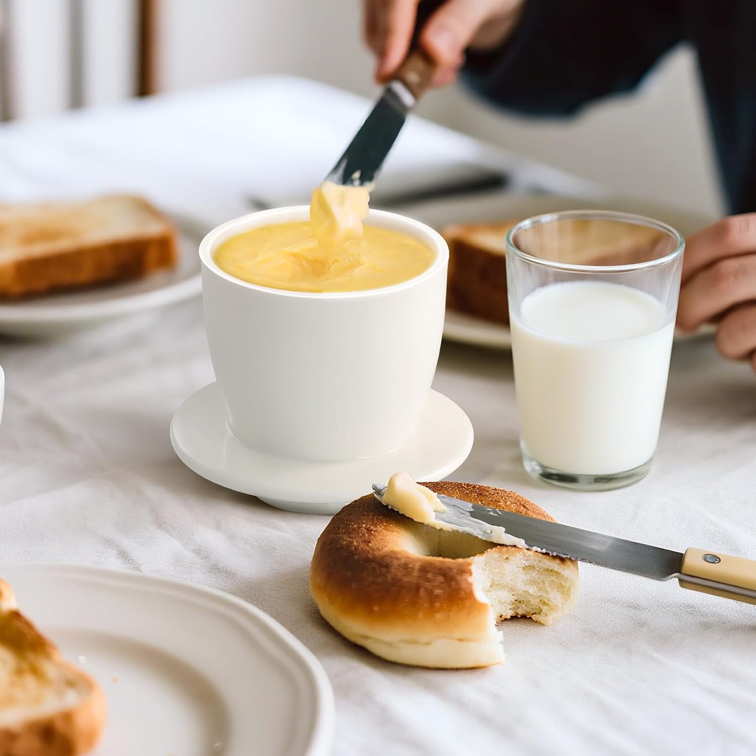 - 🧈ALWAYS SOFT, SPREADABLE BUTTER: Ditch the fridge frustration! Our butter crock keeps butter perfectly soft and spreadable — no more microwaving or awkward scrapin. The airtight water seal preserves freshness for up to 30 days (salted) and 10 days (unsalted). Enjoy velvety butter on toast, pancakes, or baked goods every time