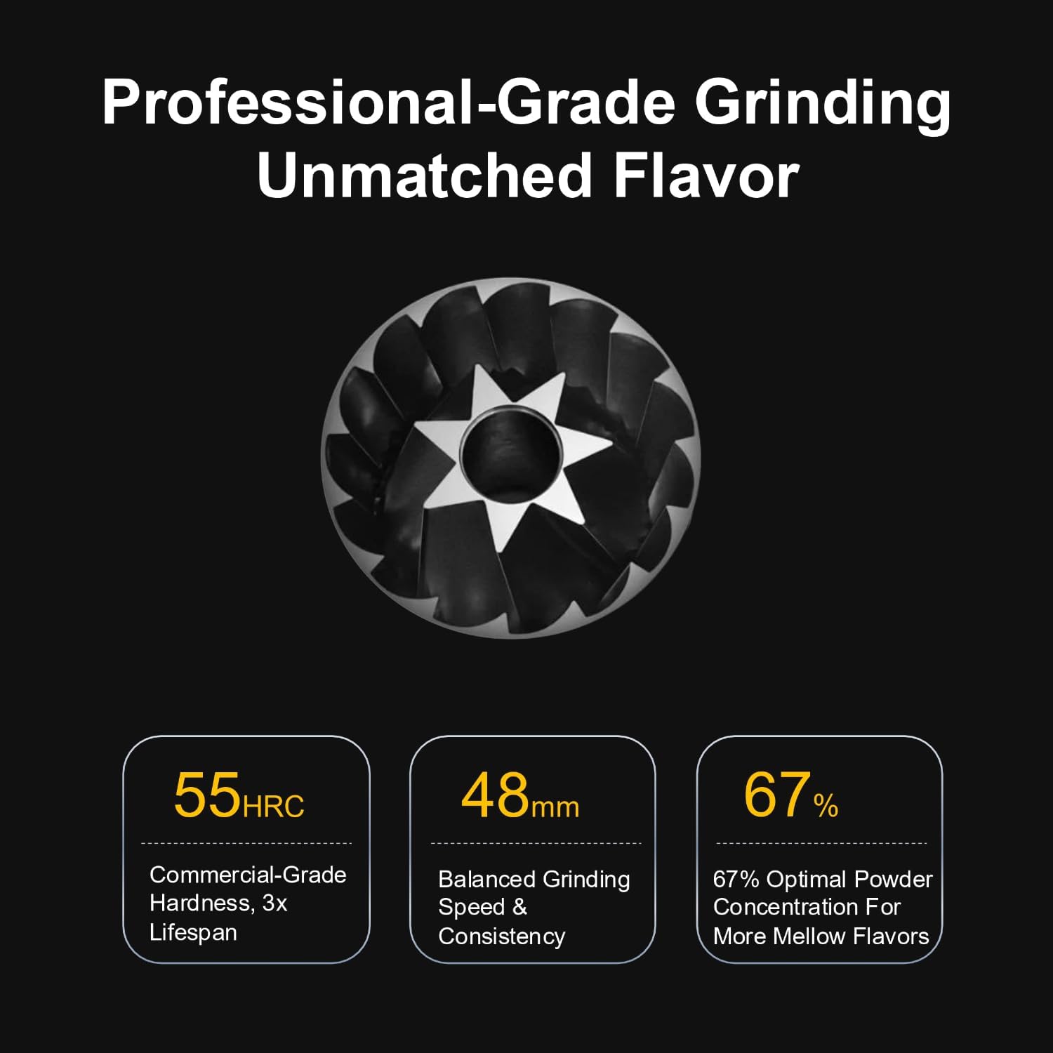 - 🧼 BPA-Free & Easy-Clean Coffee Grinder: Zero-residue chamber cleans in 5 seconds with included brush. Enjoy pure flavor without contamination—essential for single-origin beans and health-conscious brewers.