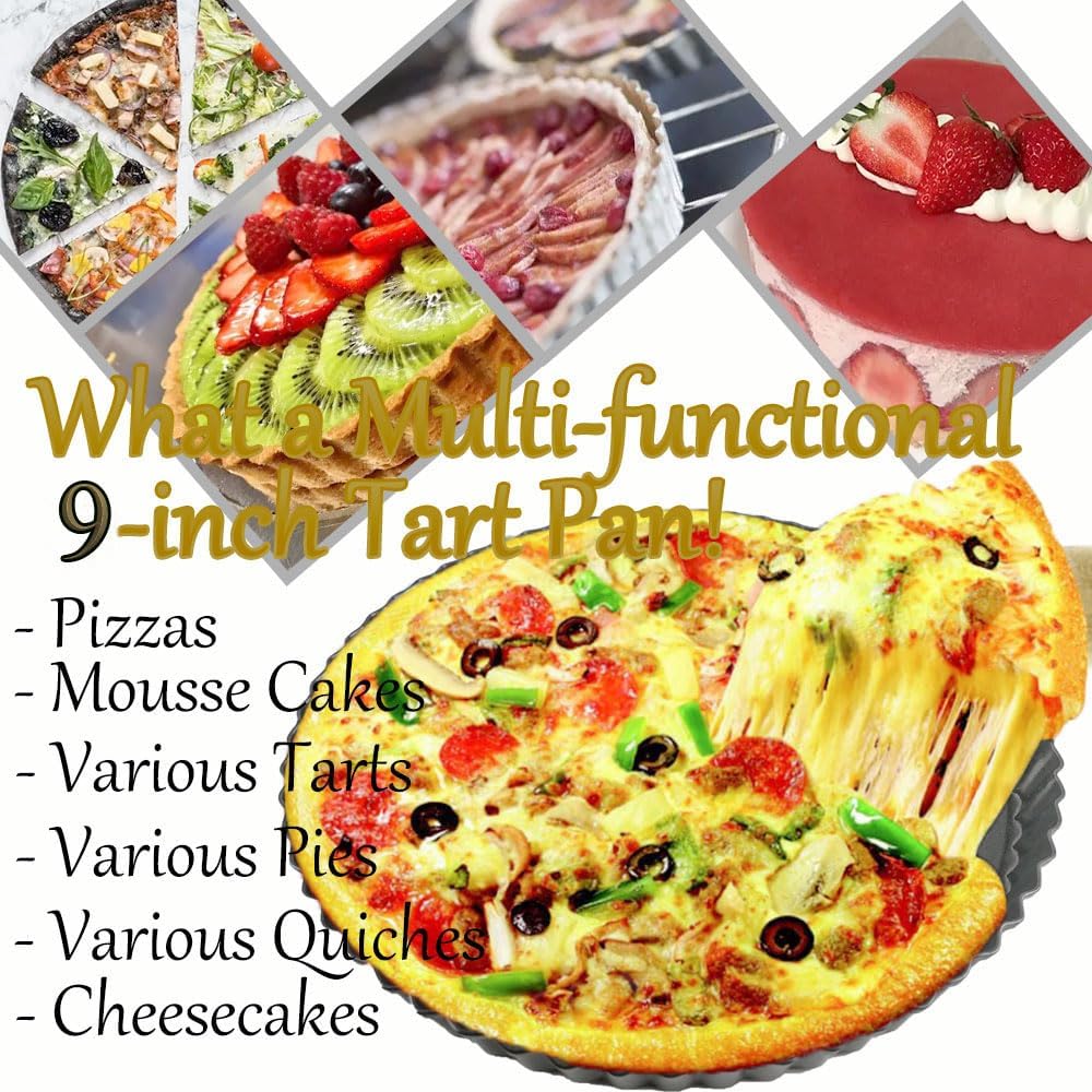 - 【Elegant Design for Stunning Desserts】 - With its classic fluted edges and round shape, 9 inch quiche pan adds a touch of sophistication to your baked creations. Versatile and stylish, it’s perfect for crafting tarts, quiches, pies, fruit tarts, mousse cakes, cheesecakes, and even savory dishes like pizzas.