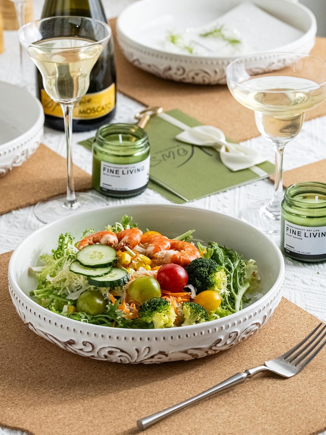 - Elegant Design: Each shallow salad bowl features a delicately embossed morning glory pattern, hand-colored with a distressed glaze. A blend of elegance and nature