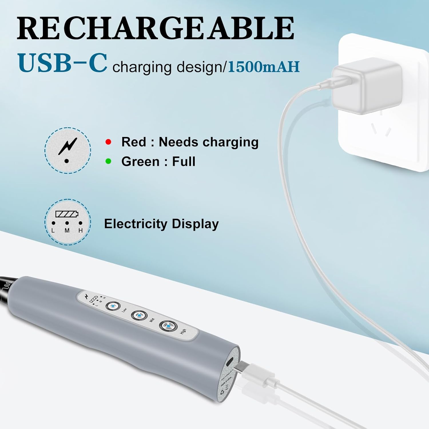 - USB-C Charging Long Battery Life: Our electric frother wand adopts USB charging design, which is more environmentally friendly and lighter than the battery type, allowing you to charge it anytime and anywhere. It can be used at home, in the office, or even taken out for camping. The built-in battery capacity is 1200mAh, which can be used several times a day after being fully charged. This drink mixer handheld also includes a charging indicator light that lights up red when charging and green when fully charged.