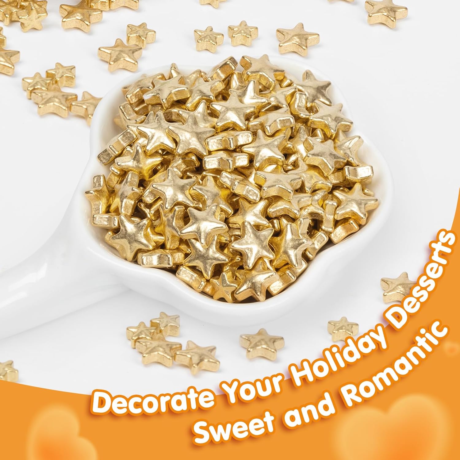 - Luxurious Gold Star Sprinkles:These bright Gold star sugar sprinkles mixes are classy for wedding and birthday cakes,holiday baking and decorating.These star sprinkle mixes are classy for birthday cakes,holiday baking and decorating anniversaries,Halloween, Christmas, New Yearโs,Valentine's Day and other special occasionsAnd you can also use them to embellish cookies,cupcakes,ice cream,fondant and pastries for added allure.secorating your favorite baked dessert with our mixing-sized lustrous Gold Star Sprinkles will surely elevate your presentation,and more to add party fun