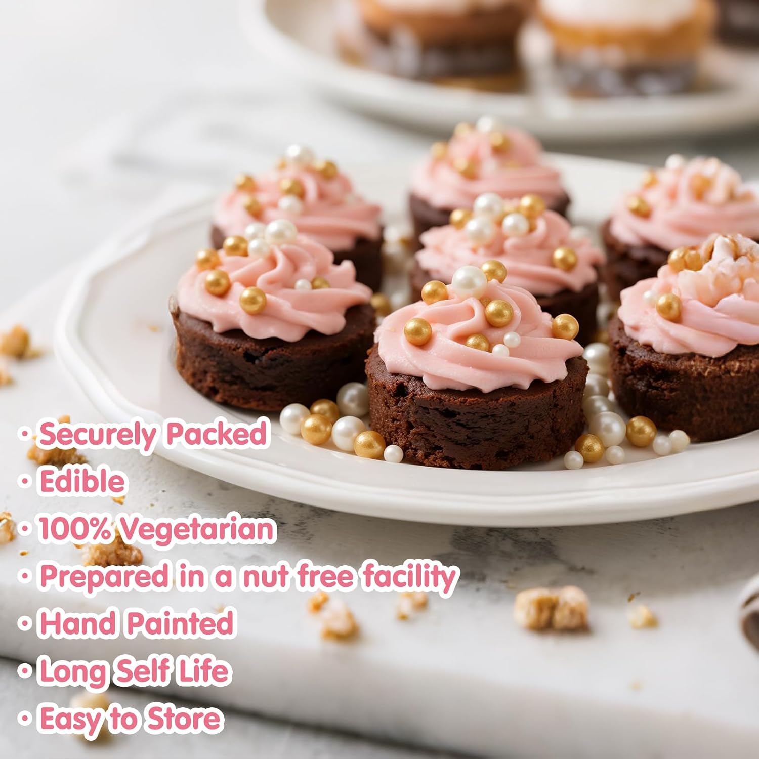 - Versatile Dessert Decoration:Our sprinkles includes different sizes of Gold and White Pearl,perfect for meeting all your baking decoration needs.The sugar decorations are edibled candies.It is normal for large candies to have a hard texture and can be eaten with confidence.After baking,decorate the cookies or cake with Pearl sugar to avoid melting