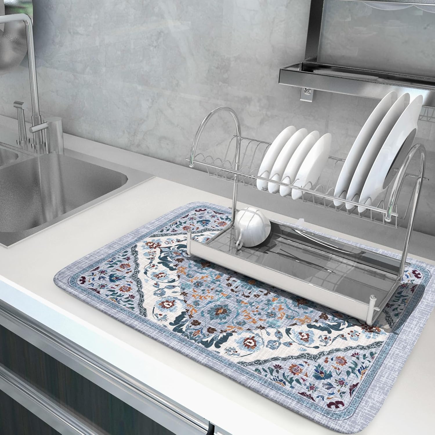 - 【Protect Tableware】Place your dishes on it or under dish racks, the bohemian flower dish mat prevents bowls, glassware, and more tablewares from being scratched or worn, can be used as dish drying mat, sink mat, dishes drainer mats to keep the countertop dry and tidy.