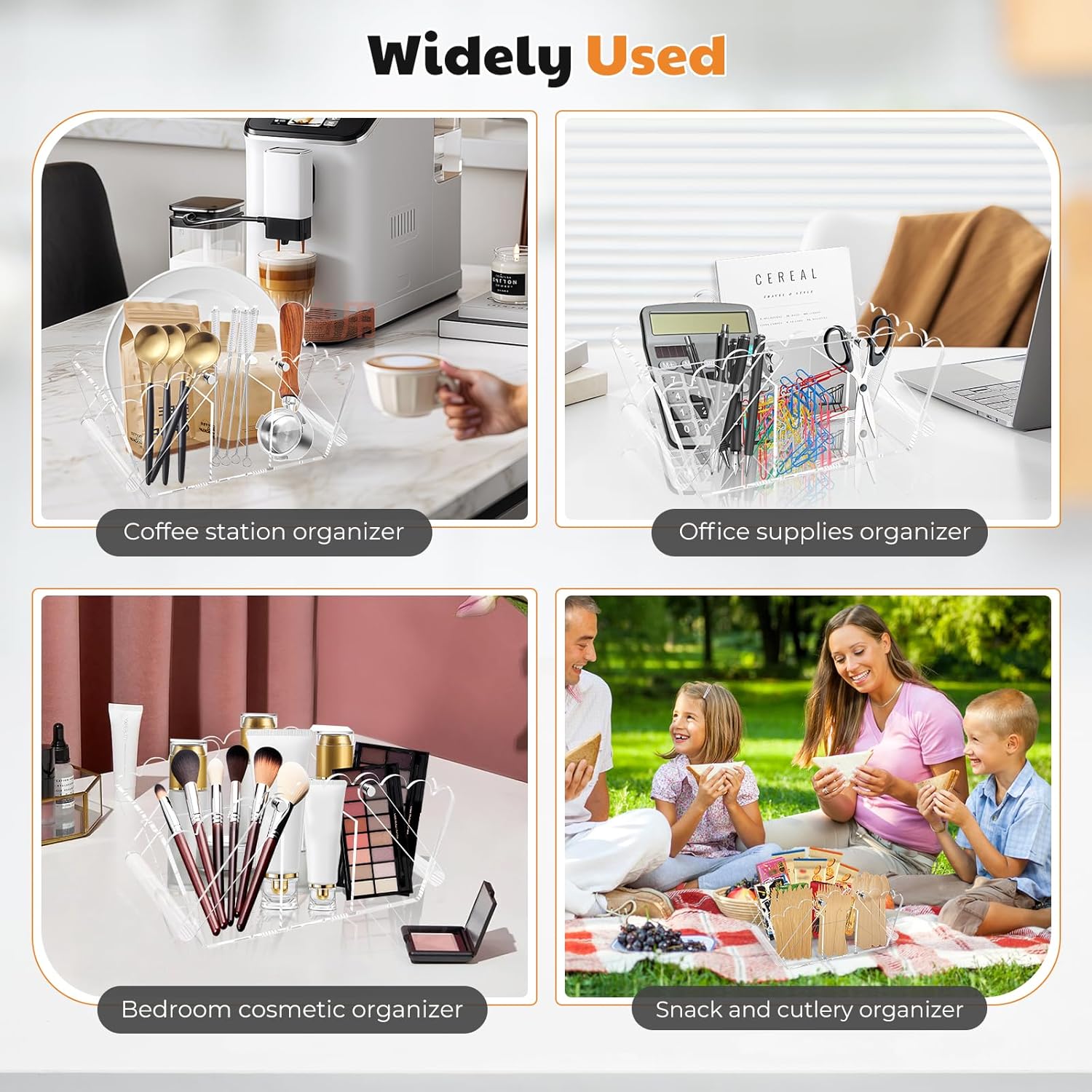 - 【Multi-Purpose Organizer Versatility】 Beyond kitchen essentials, use this scalloped silverware organizer for crafts (markers, scissors) or makeup brushes. Its versatile acrylic design suits offices, bathrooms, or creative spaces, keeping items neatly separated and accessible.