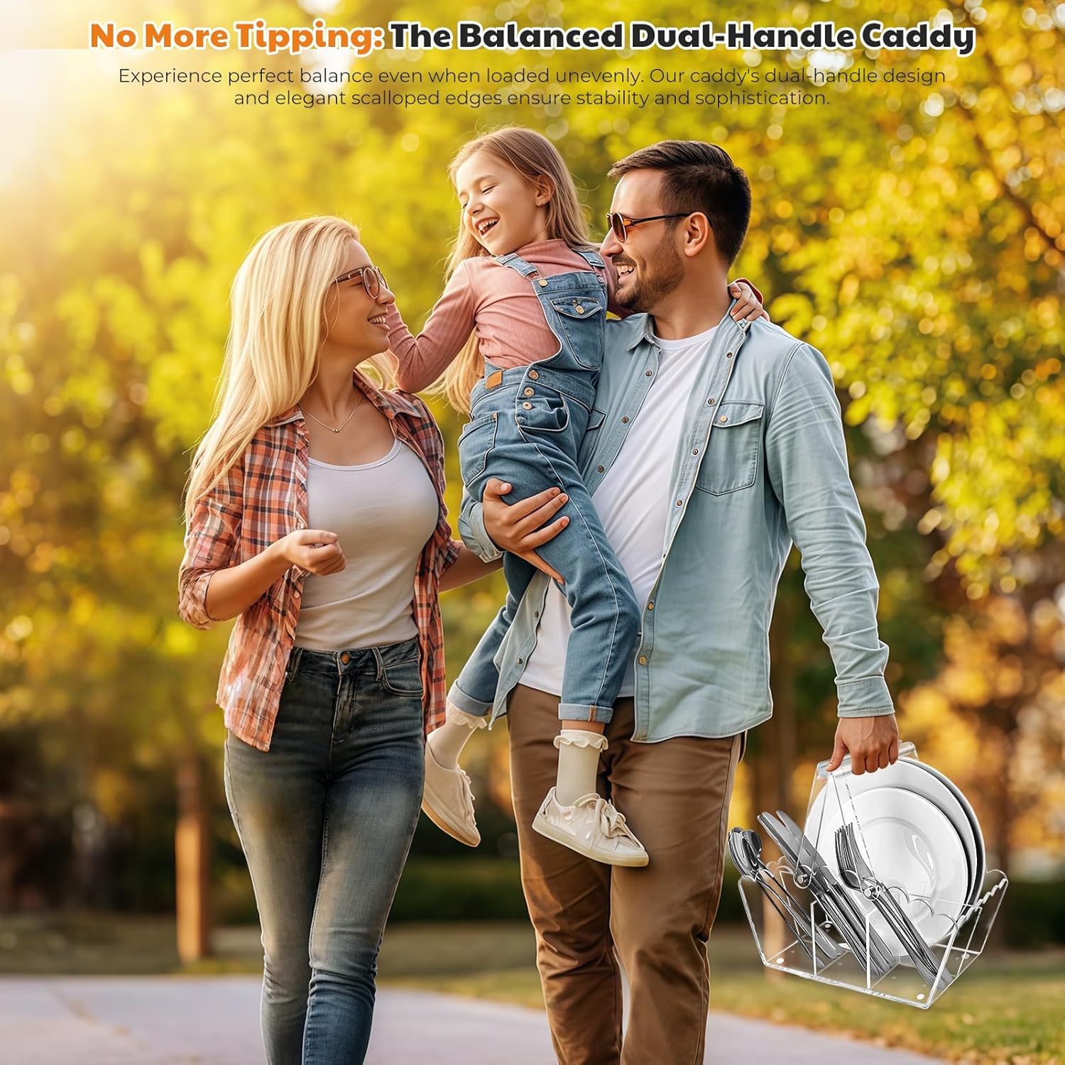 Scalloped Silverware Organizer. Acrylic Utensil Caddy.Heavy-Duty Countertop Cutlery Holder for Spoons,Forks,Knives, Napkins,Plates Space-Saving Countertop Cutlery Caddy - Picnic Party Essential
