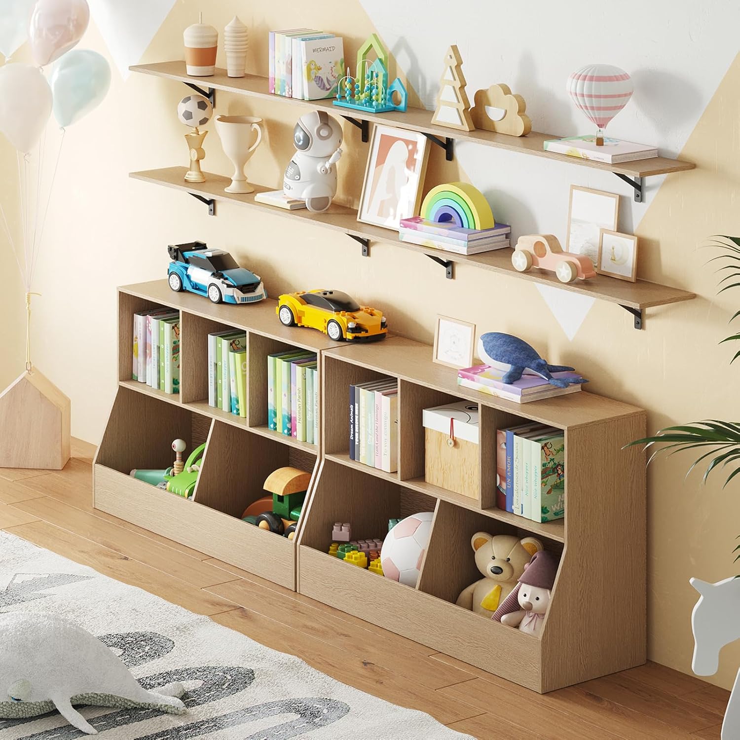 - 【Extra Large, Storage More】Multiple shelves create extra storage space on the wall. Wider and longer than others, bringing more possibilities for wall display. Make full use of vertical space to organize clutter and free up messy desktop. Set of 2 long hanging shelves offer multi-layer storage without taking up spaces. Dimension: 55.1"L x 7.9"W x 6.1"H