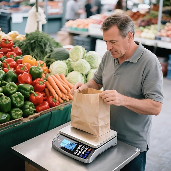 110lb Food Scale, Commercial Kitchen Scale with Price Computing, Plug-in Usable, 0.05oz/1g, 304 Stainless Steel, for Cooking, Vegetables, Farm, Industry, Counting. LC300 Grey