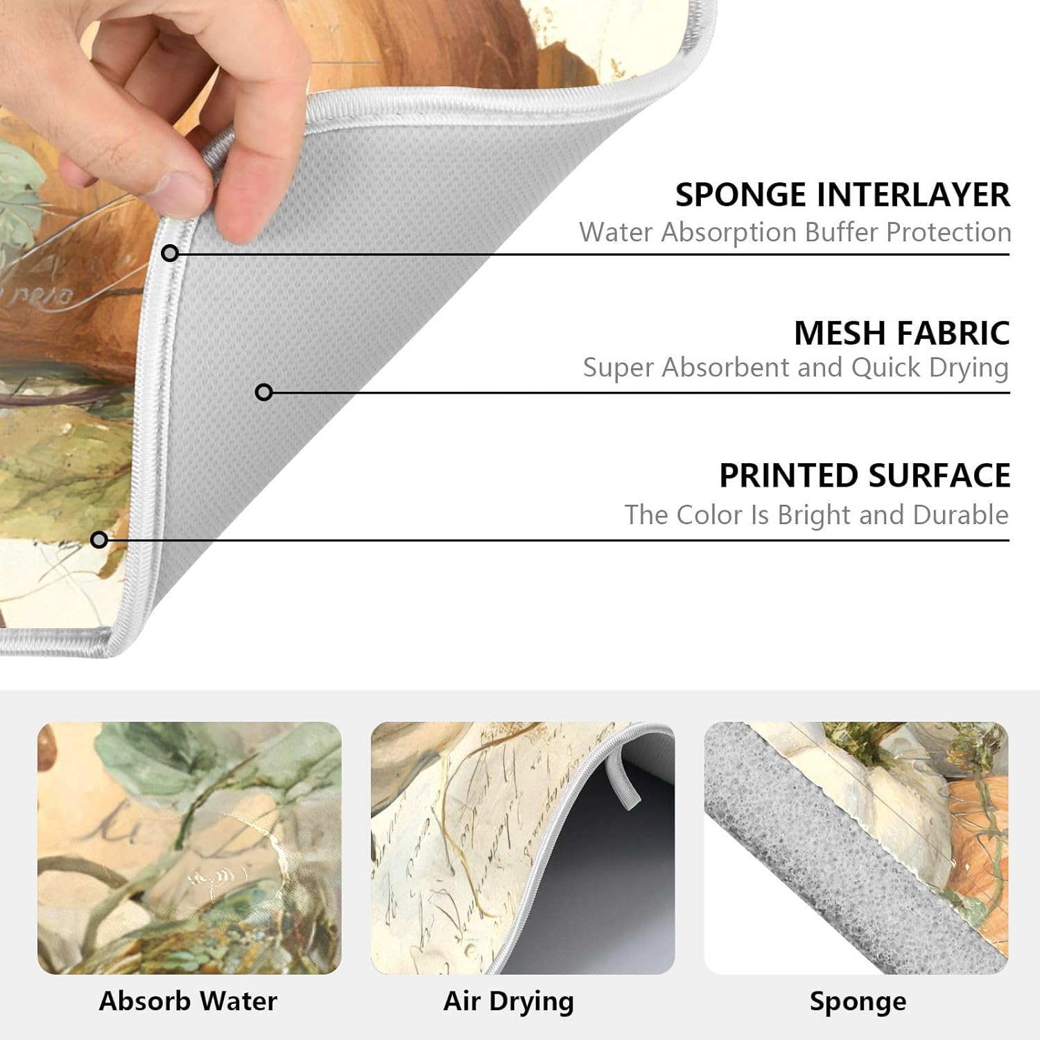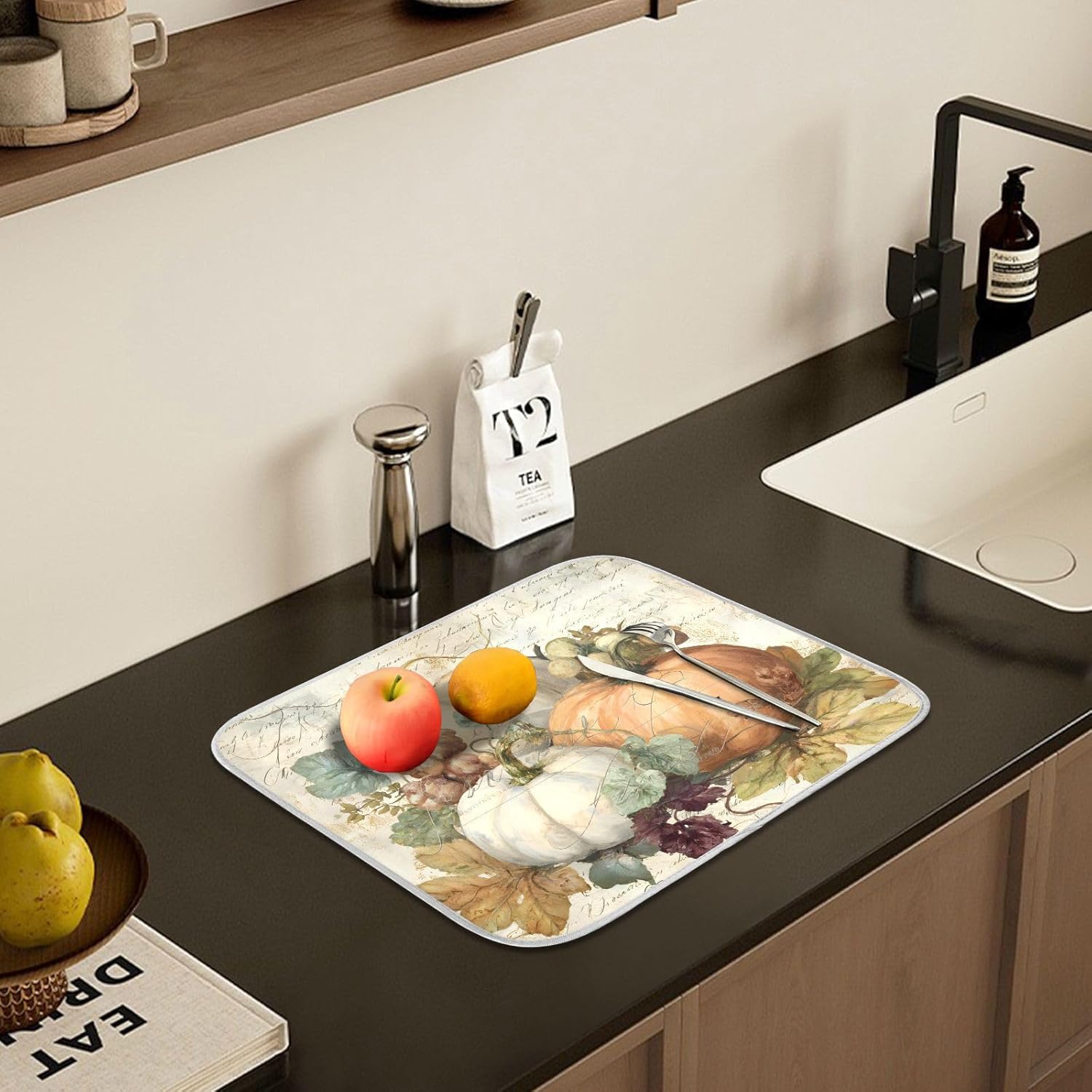 Autumn Pumpkin Fall Leaves Thanksgiving Dish Drying Mat for Kitchen Counter Absorbent Microfiber Small Drying Pad Dish mats for Kitchen Countertops 16 x 18 Inch