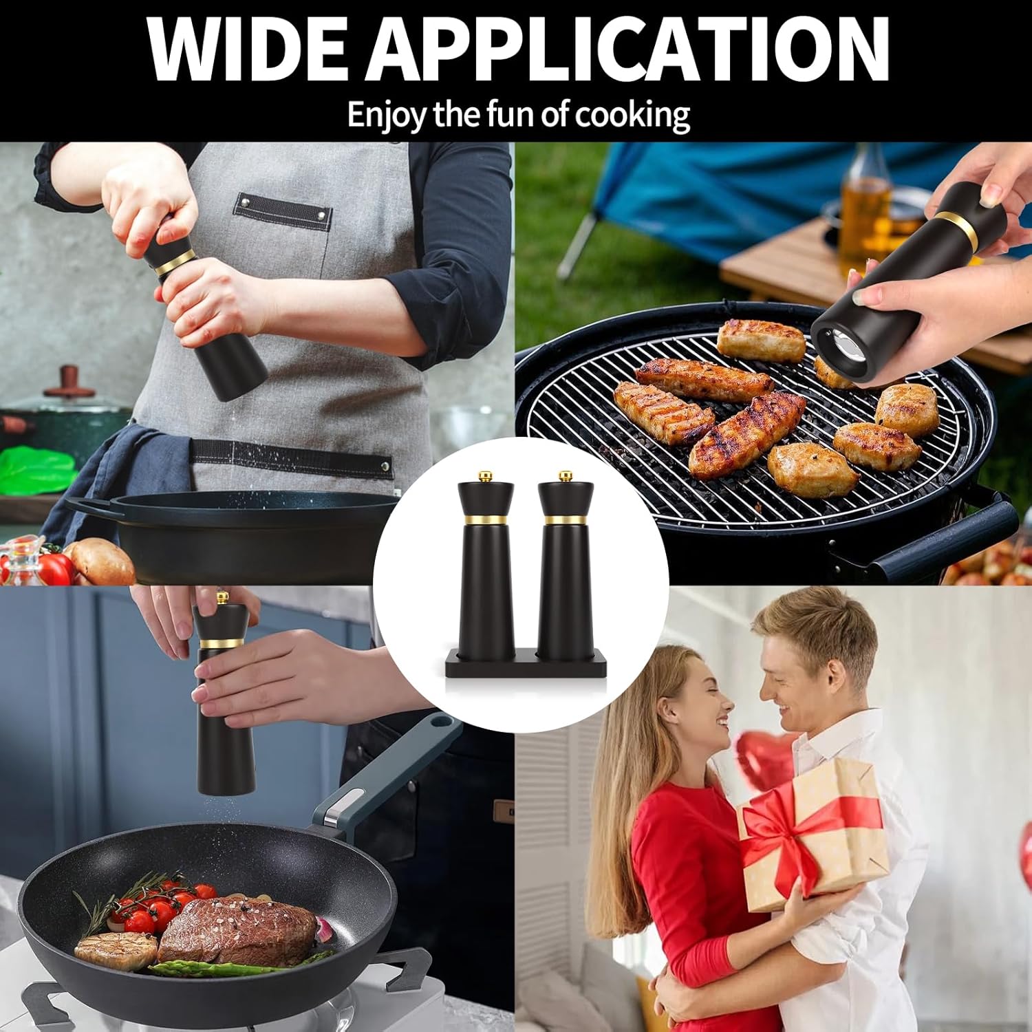 - Natural Wooden Design: This wooden salt and pepper grinder set Crafted from premium-grade Acacia Wood, this 7.2-inch salt and pepper grinder set combines durability and style, complementing any kitchen or dining table decor.