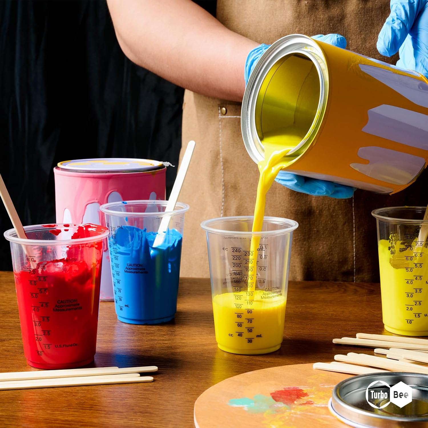 - Bulk 200-Pack with Mixing SticksMaximize value! This set includes 200 durable 8oz disposable measuring cups & 200 sturdy sticks. Perfect for epoxy resin molds, paint mixing, and saves you cleanup time