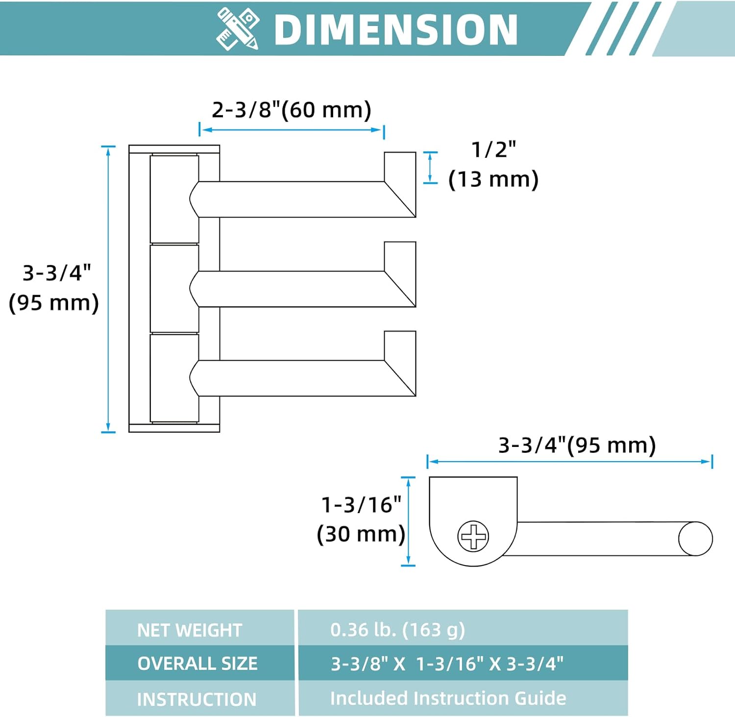 - SUFFICIENT STORAGE: with a hanging length of 2-3/8" (60 mm), hanging 3 items without tangling. Perfect for organizing towels, robes or kitchen tools, keeping everything neat and within reach