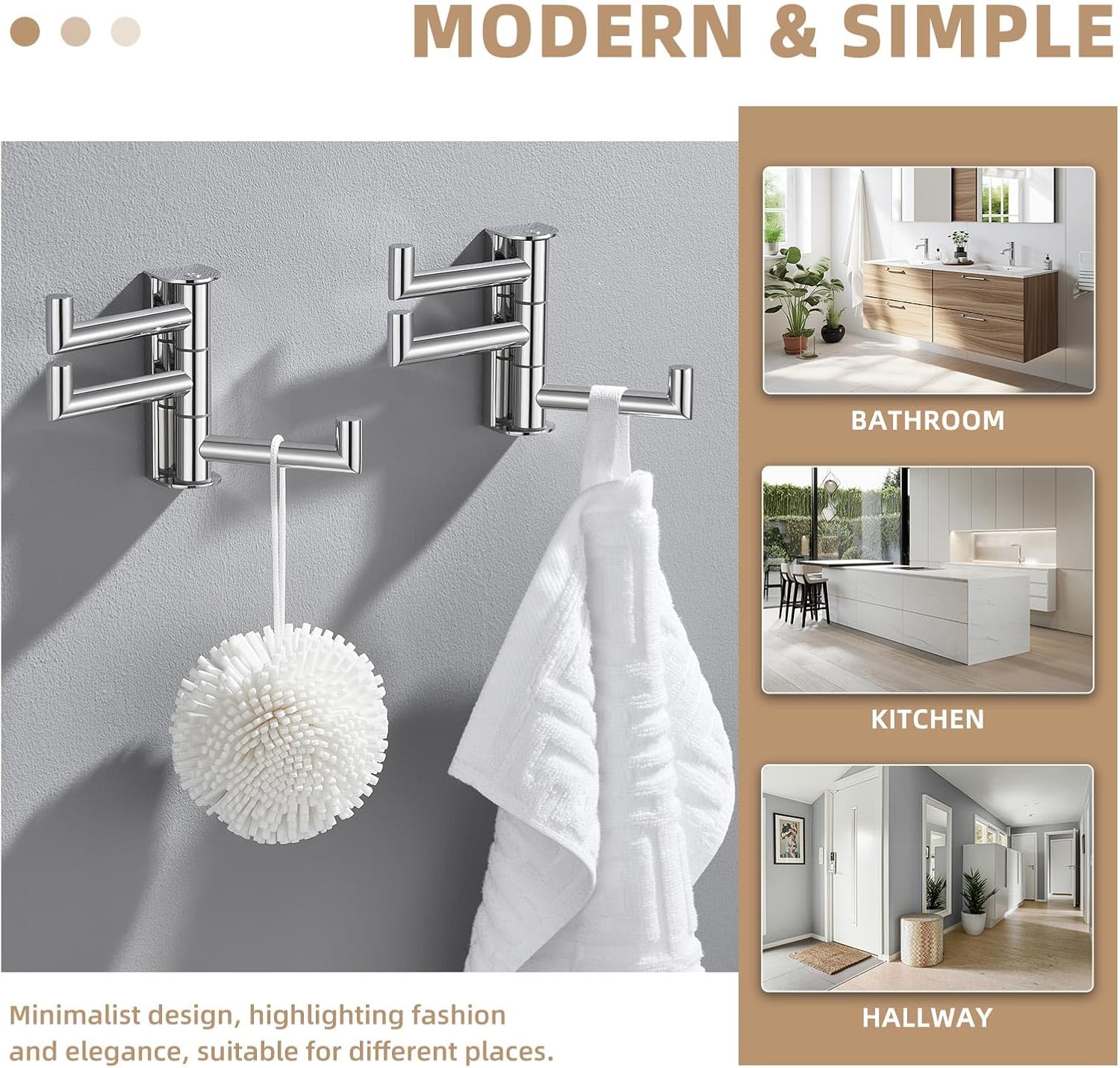 Suyar Swivel Towel Hook Polished Chrome, SUS 304 Stainless Steel Robe Holder for Bathroom with 3 Arms, 2 Pack