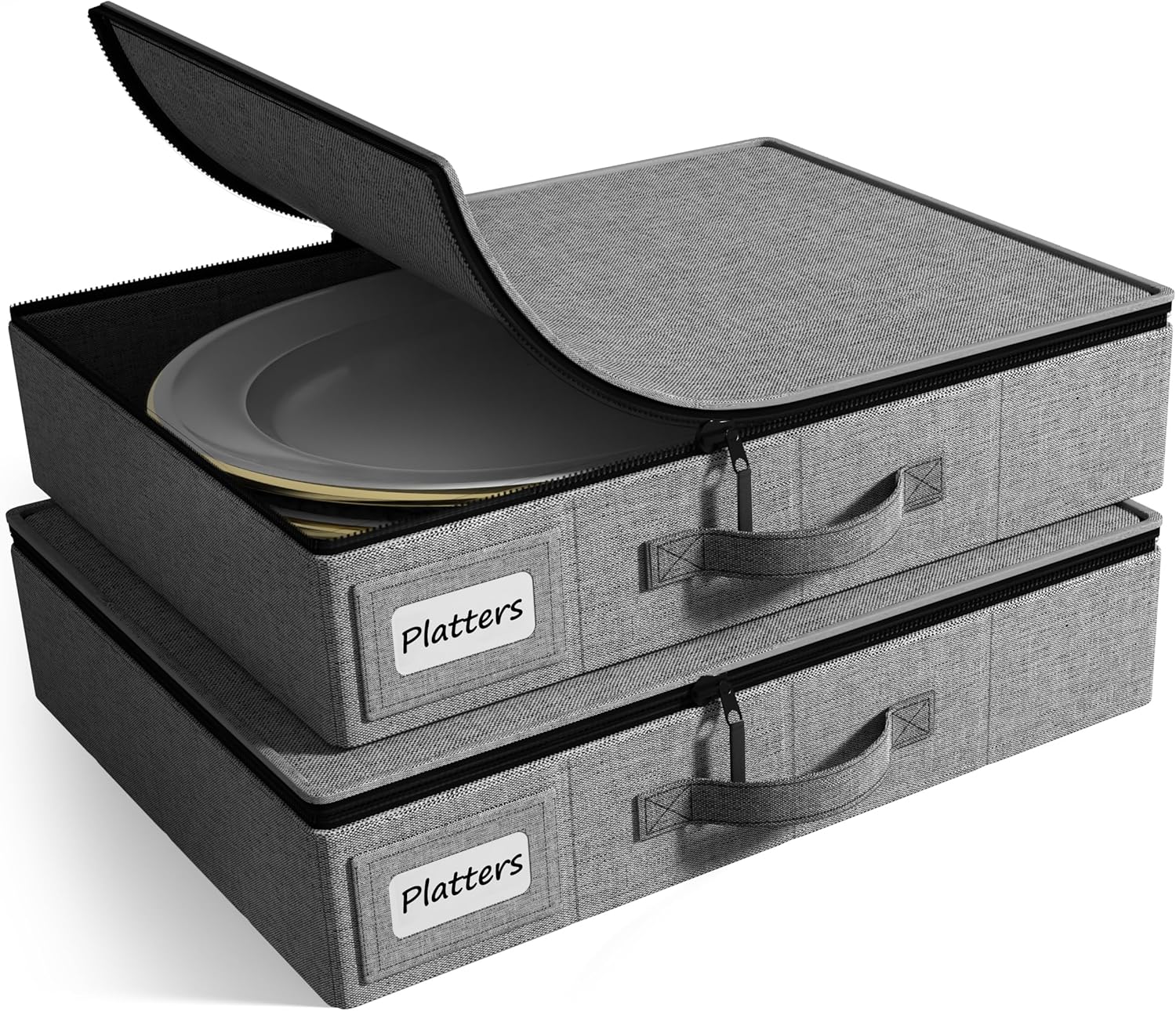 - ✅ 2-PACK FOR DOUBLE THE STORAGE CAPACITY — Includes two matching containers to help you organize more dinnerware at once—ideal for seasonal or large family collections.