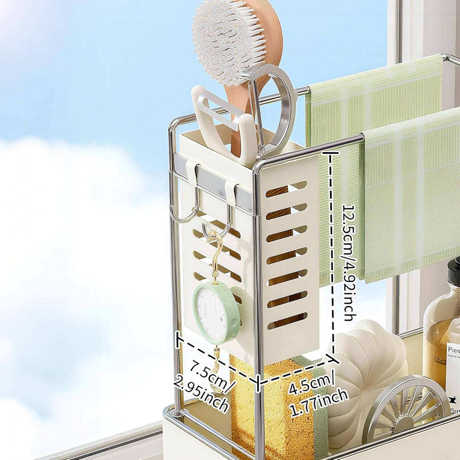 - All-in-One Sink Solution: Beyond holding sponges and brushes, the integrated hooks are perfect for hanging dishcloths, scrubbers, or even small scissors—adding extra utility to your sink area. A true all-in-one organizer for all your daily cleaning essentials