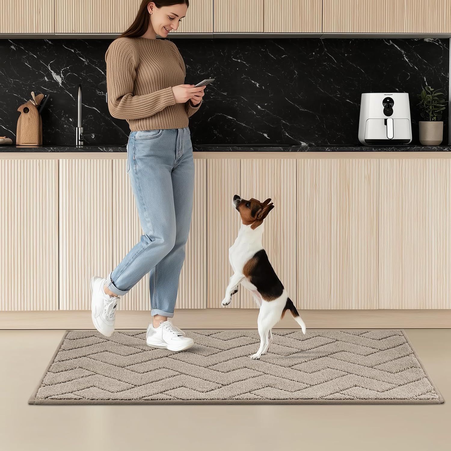 - [Easy Care & Waterproof Kitchen Floor Mat]: With countless polyester microfibers, our kitchen rugs effectively absorb spilled oil and water. The polyester washable carpet is designed to stand up to machine washing, it'll be easier to wash off the dirt.