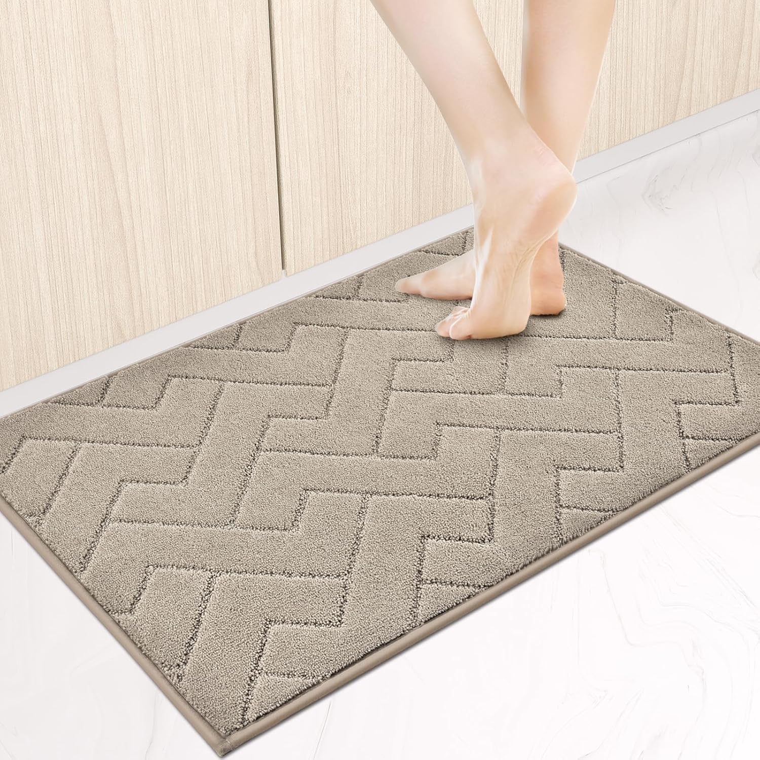 Machine Washable Kitchen Rugs 24" x 36", Non-Slip Kitchen Runner Rugs Mats for Floor, Absorbent Comfort Standing Mats for Kitchen, Sink, Laundry and Hallway, Taupe