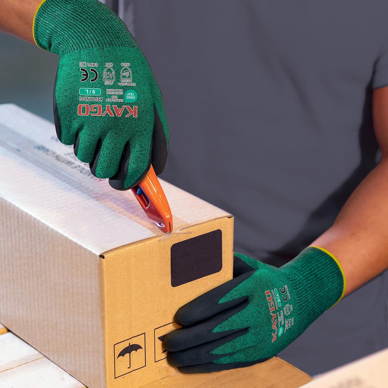 KAYGO Safety Work Gloves MicroFoam Nitrile Coated, 3 Pairs KG18N, Cut Resistant Glove with Abrasion and Oil Resistant Grip, ANSI Cut Level A2, XL, Green