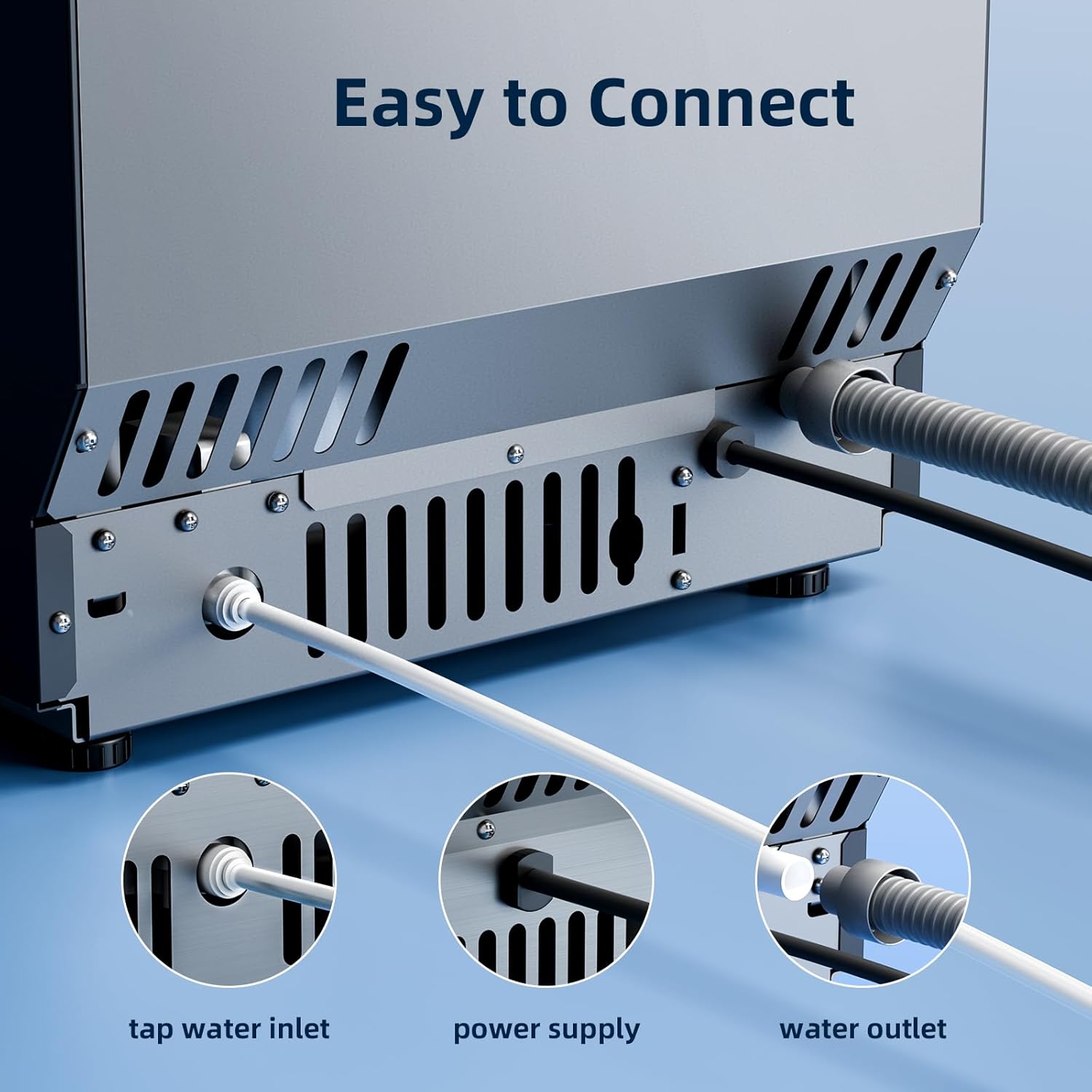 - Durable Stainless Steel Build:Constructed from premium stainless steel, the ice maker resists corrosion and ensures long-lasting durability. The freestanding design with elevated feet prevents moisture damage, while the smooth surface simplifies cleaning.