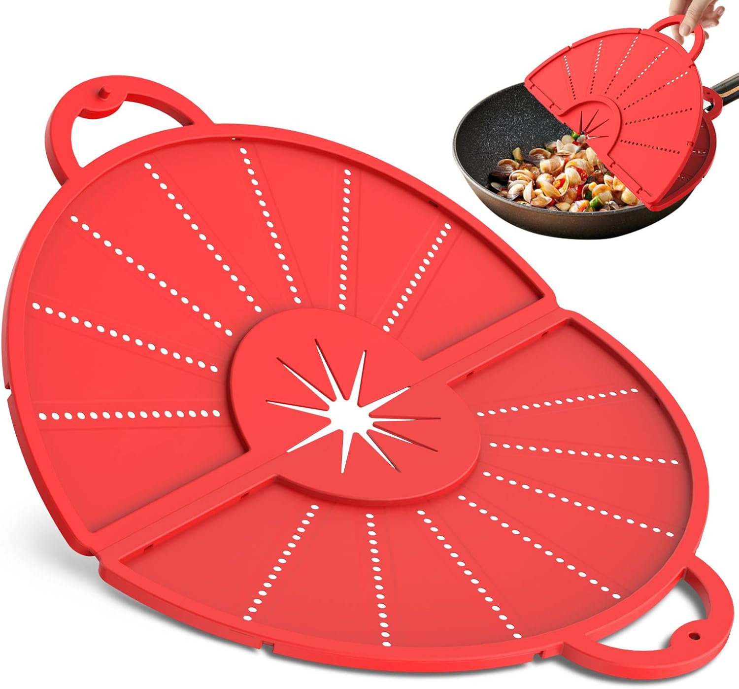 Silicone Splatter Screen for Frying Pan, Foldable Splash Guard, Multi-Use Grease Splatter Guard,Heat-Resistant Trivet Mat, 12" Non-Stick Oil Splatter Guard, Dishwasher Safe, BPA Free-red