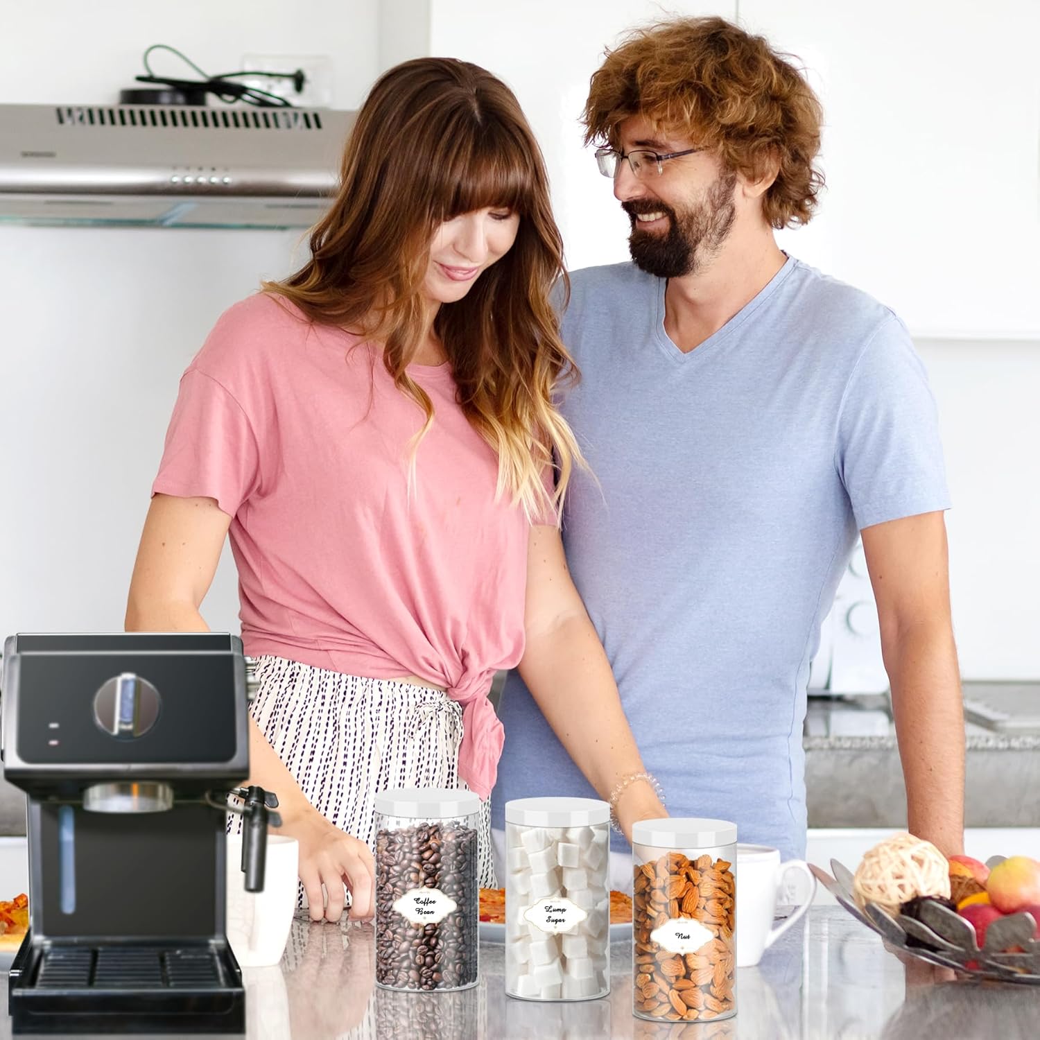 - Package Includes: This clear plastic jar set will come with 16 pcs 32 oz plastic jars with white lids, 24pcs stickers and 1 marker pen. These clear plastic jars meet all your different uses. These are good helpers to help you stay organized and save time