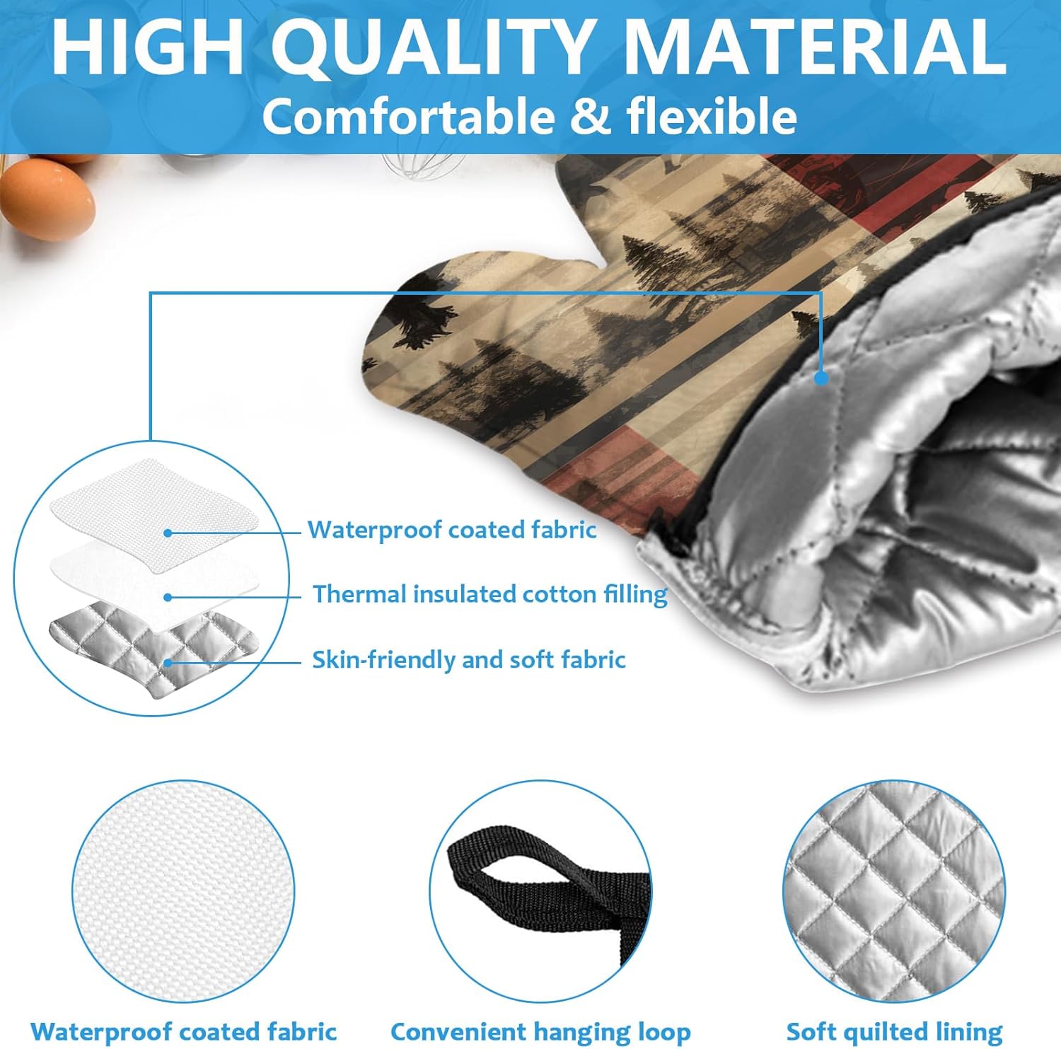 Deer and Bear Oven Mitts and Pot Holders Sets Heat Resistant 4Pcs Wild Animal Potholders Oven Gloves Hot Pads for Kitchen Baking Cooking Grilling BBQ