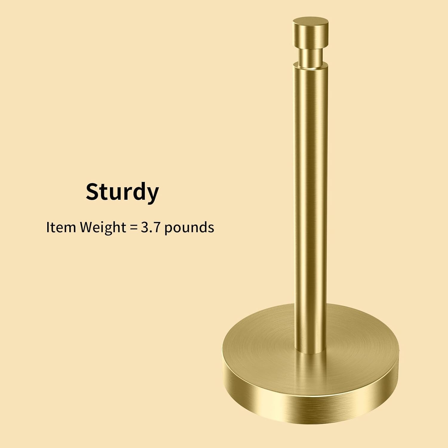 Paper Towel Holder Countertop, Paper Towel Holder with Weighted Base Non Slip, Standing Paper Towel Roll Holder for Kitchen Bathroom, Easy One-Handed Operation, Stainles Steel (Gold)