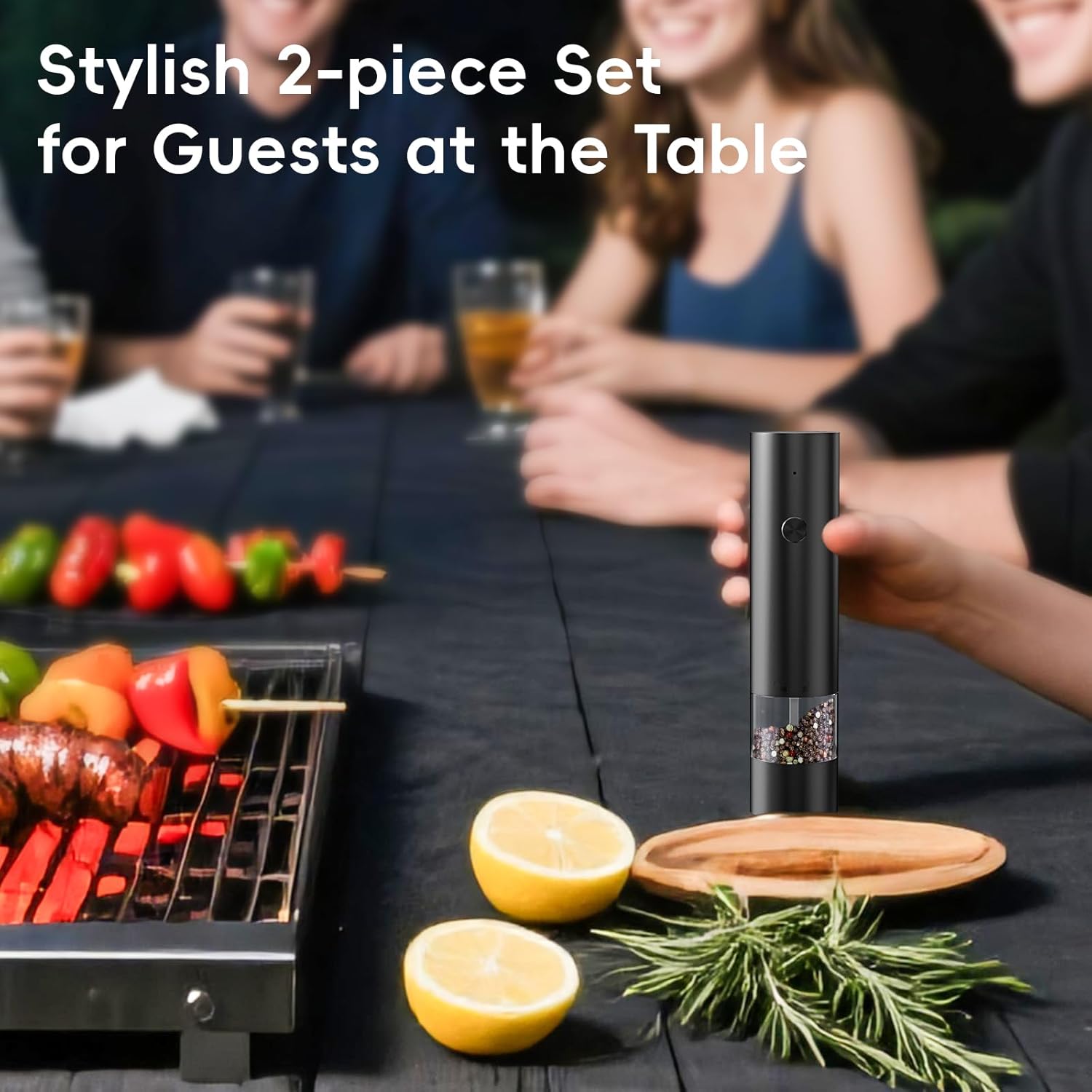 - 【One-Button Wonder – Effortless for All】Single-button control—no flipping required! At just 6.9 ounces, this electric salt and pepper mill is lighter than a smartphone and easy for everyone—extra gentle on kids, seniors, and anyone with hand discomfort. Take it anywhere, from kitchen to backyard BBQs