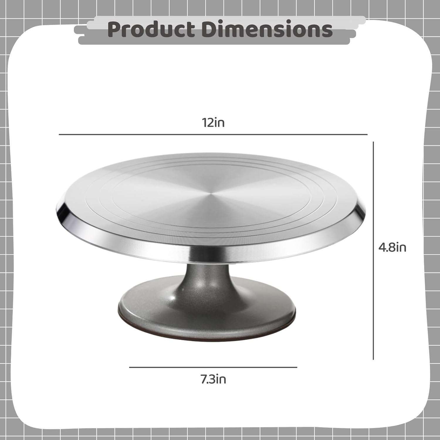 - Non-Slip Base for Stability: metal cake turntable equipped with an anti-slip rubber pad; provides excellent grip and prevents slipping during use; ensures the turntable stays stable, even during intricate decorating tasks