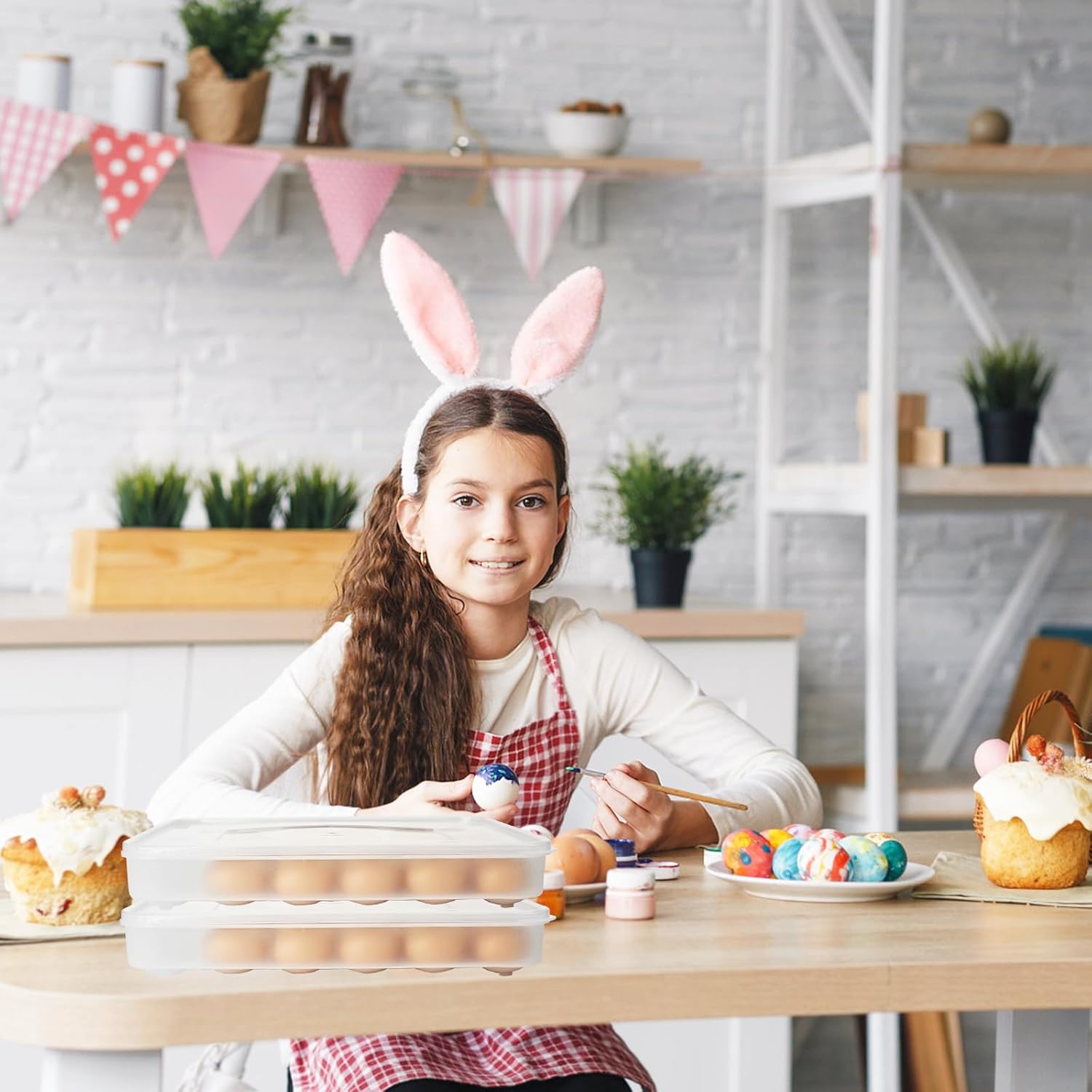 - 【Practical Design】:Easter covered egg holder has special egg slots that distribute weight evenly and keep eggs stable.It is stackable,saving a lot of storage space,so you can easily store it in the refrigerator,kitchen,or storage room.