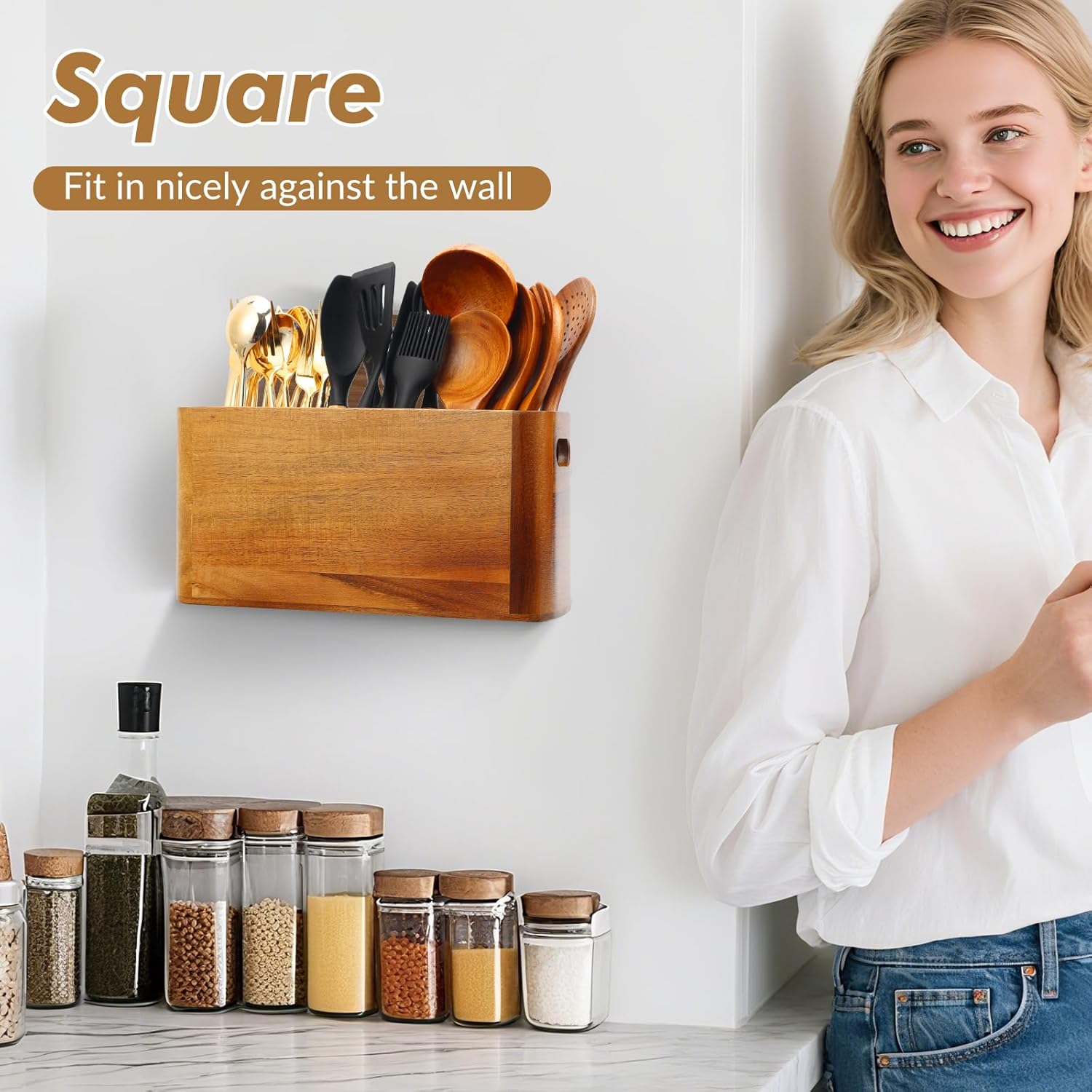 - Space-Saving & Versatile Placement: Includes discreet wall-mount hooks for hanging, Can also stand securely on countertops to save space. Compact yet holds all your most-used utensils.